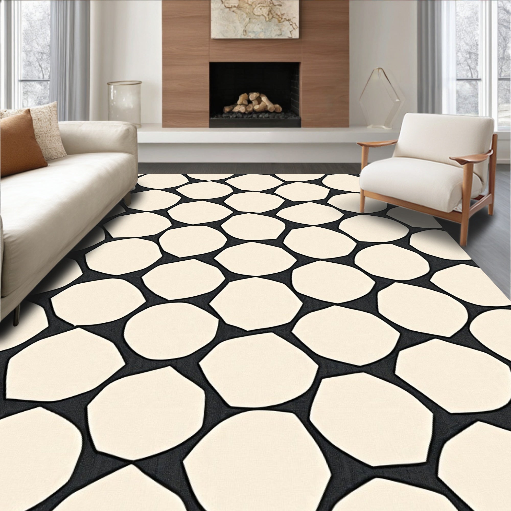 Crystalline Hexagon Contemporary Abstract Design(Black)