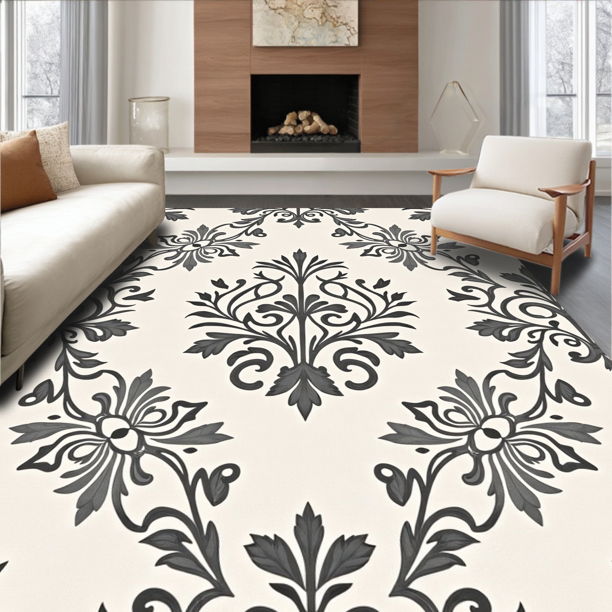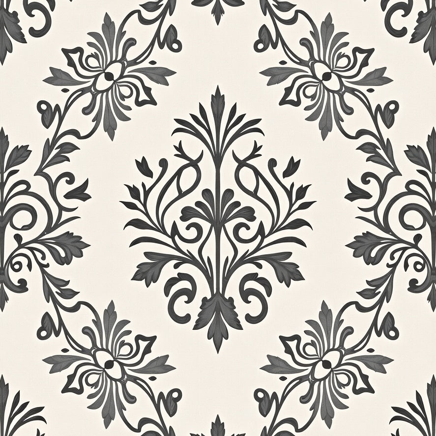 Classical Symphony Damask Transitional Heirloom Ornate Flourish(Gray)