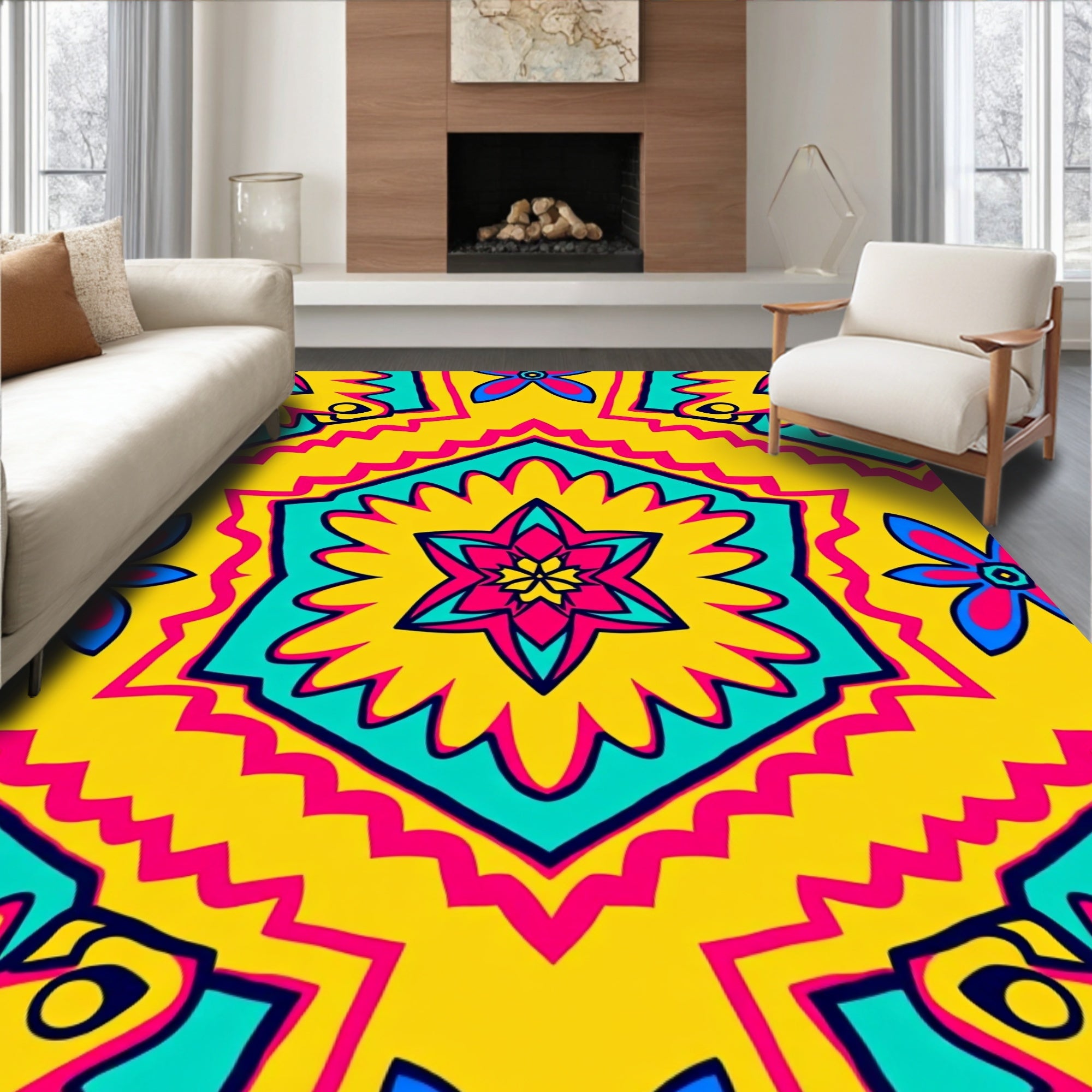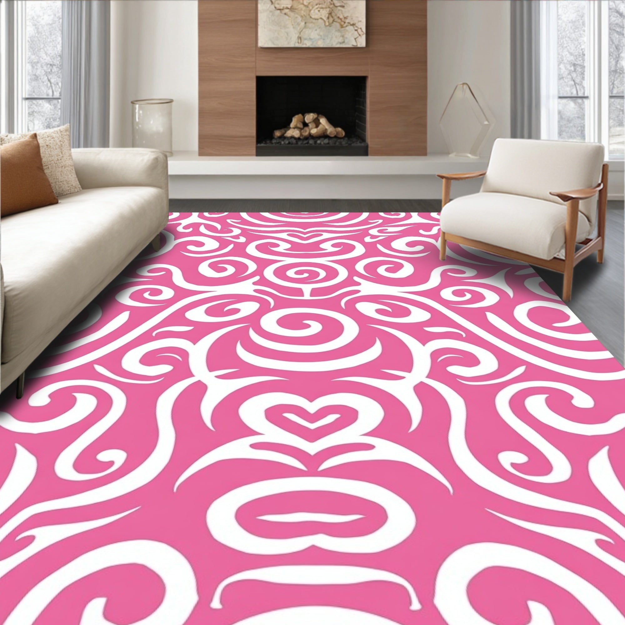 Swirl Medallion Abstract Twisted Knot Decorative Flooring(Pink)