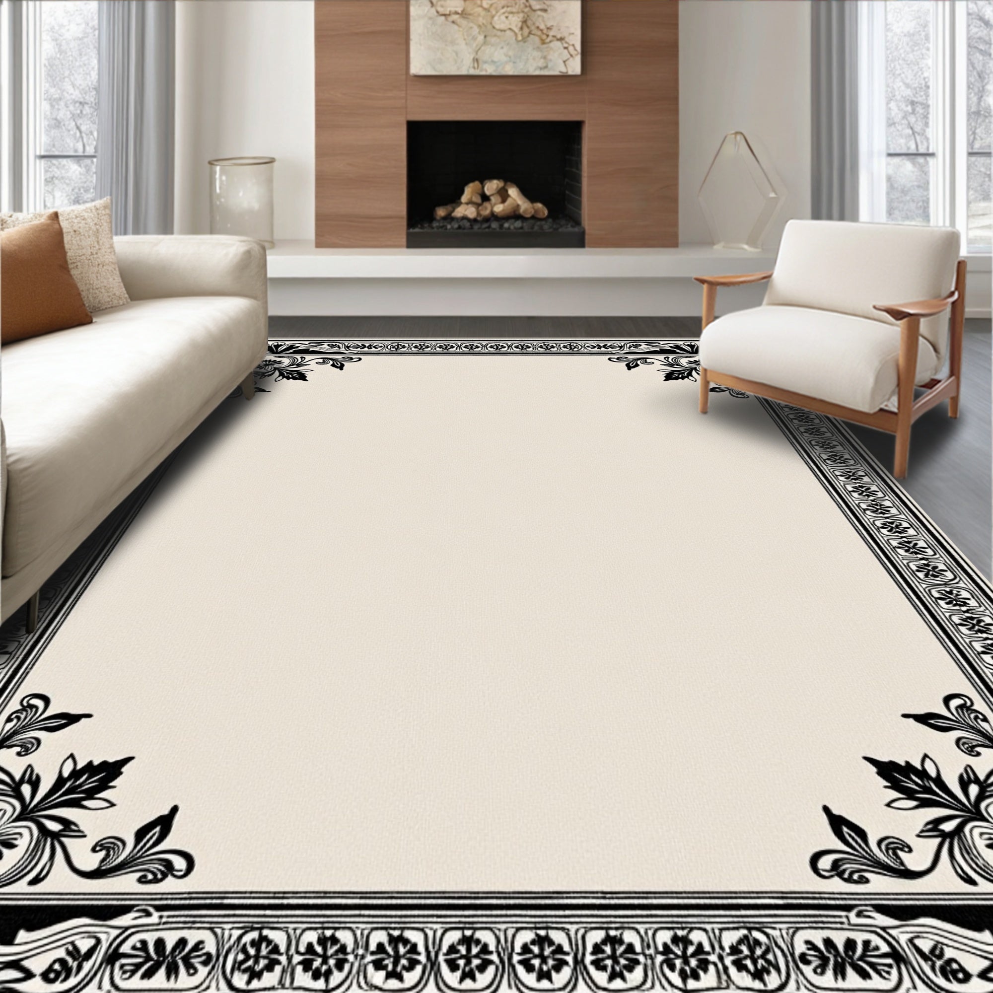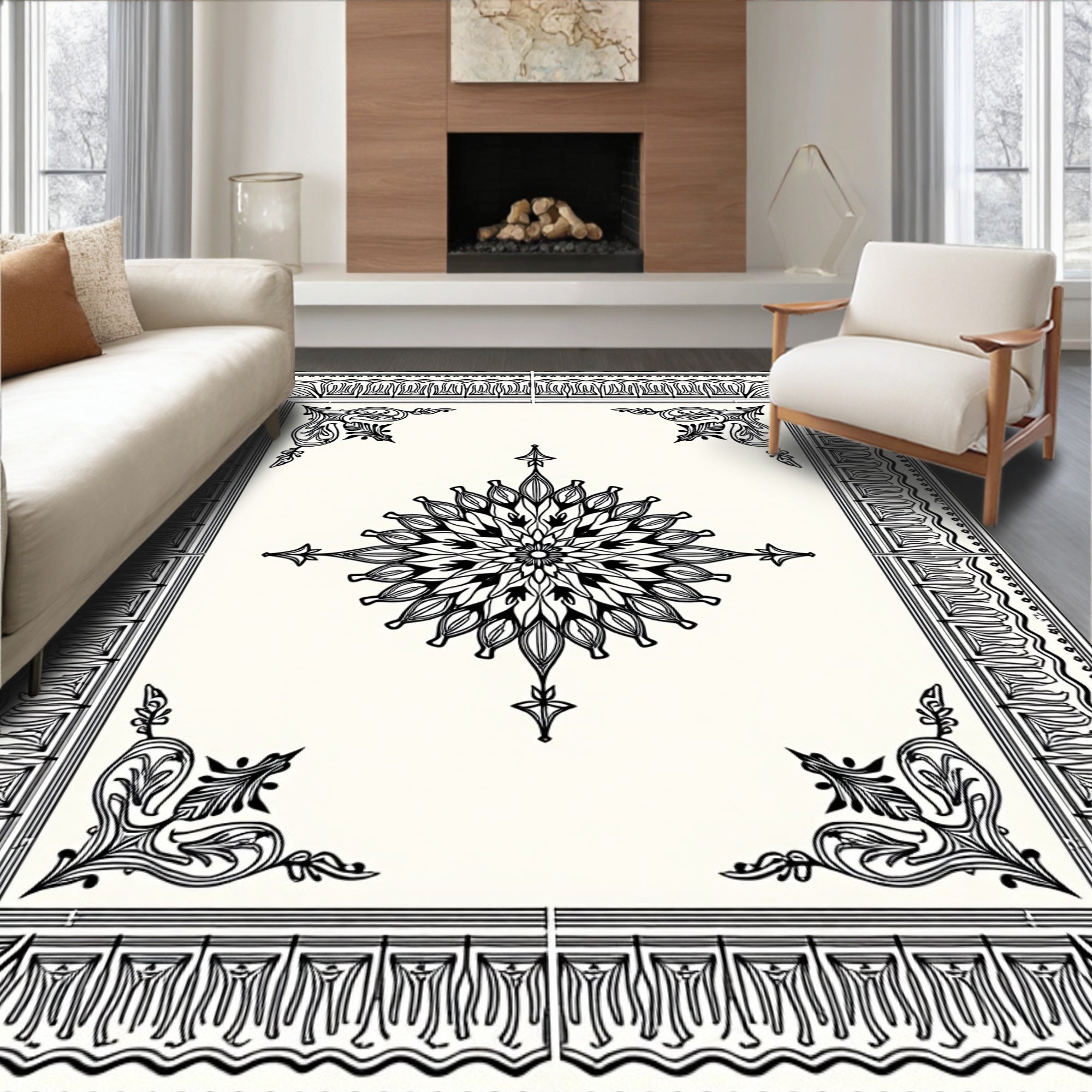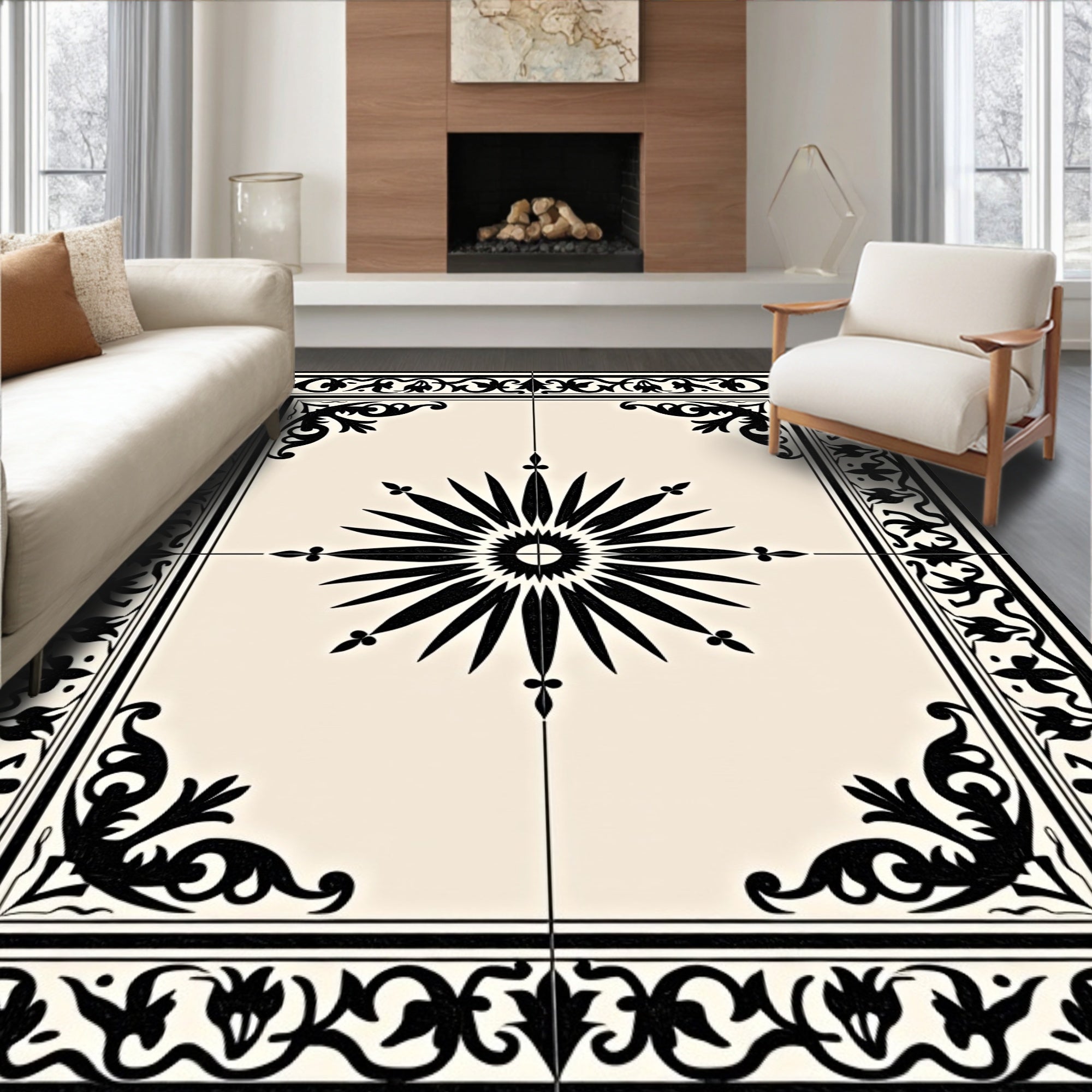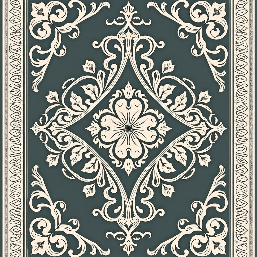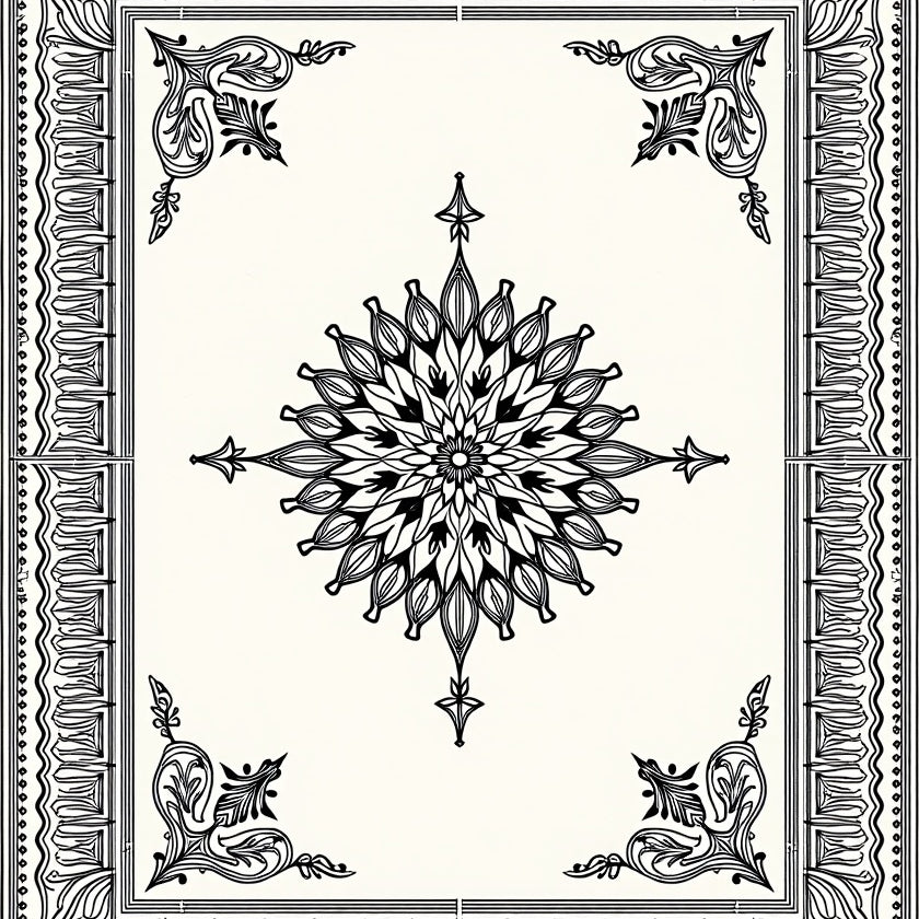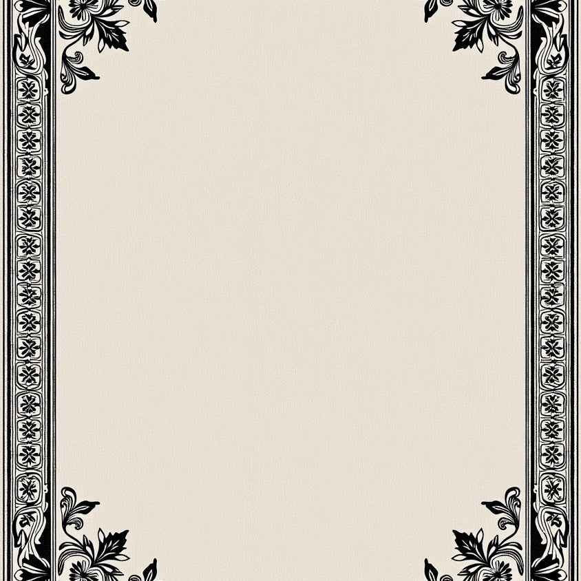 Elegant Vintage Floral Medallion With Ornate Border Design(Black)