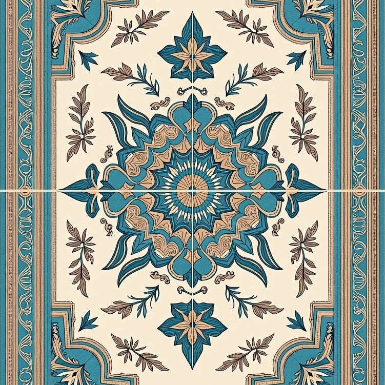Modern Slate Medallion Motif with Subtle Vintage Distressing(Beige)