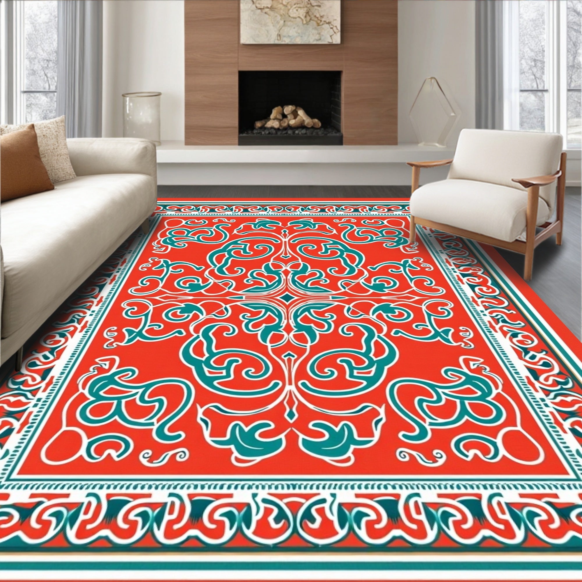 Elegant Floral Medallion Contemporary Decorative(Red)