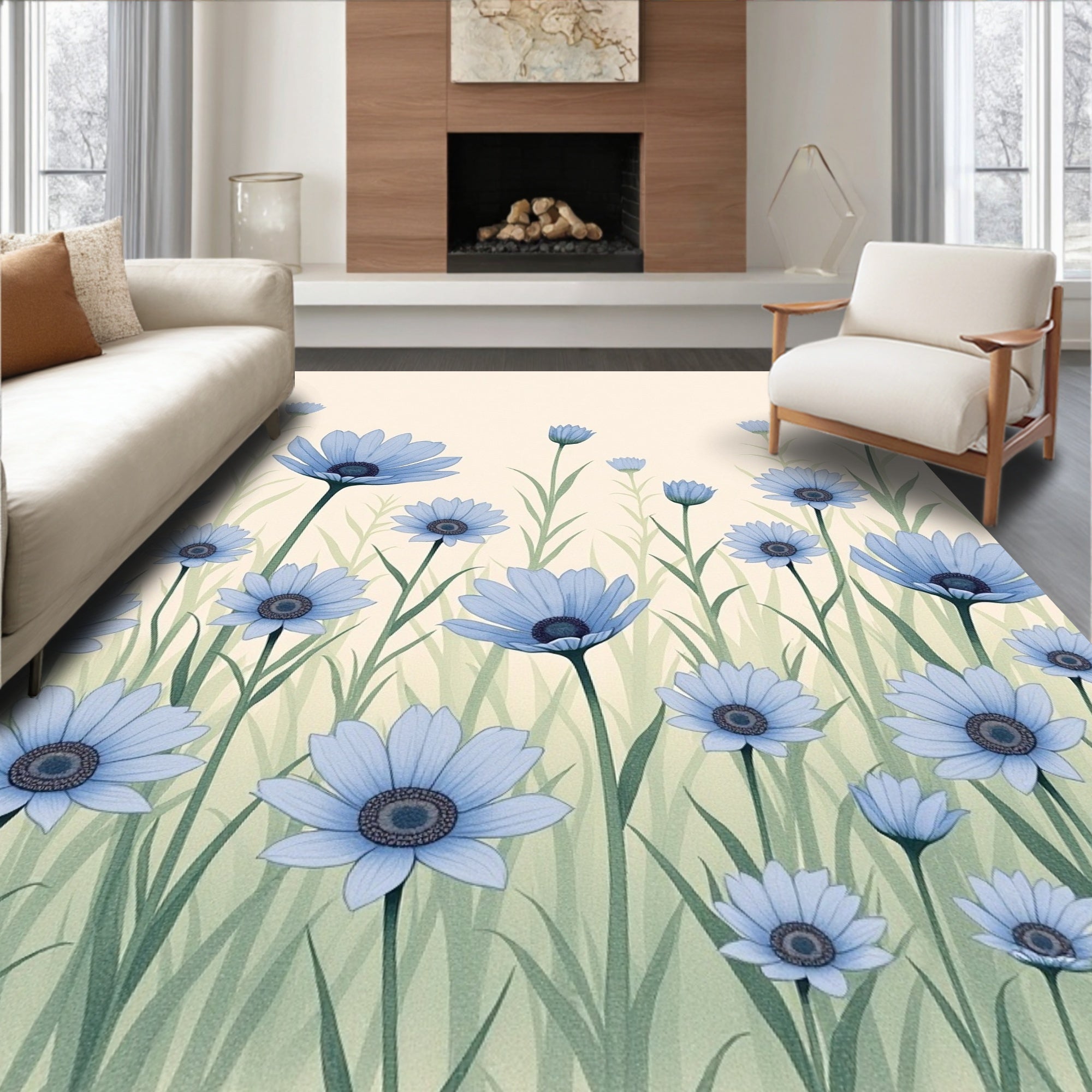 Meadow Garden Watercolor Illustration(Blue)