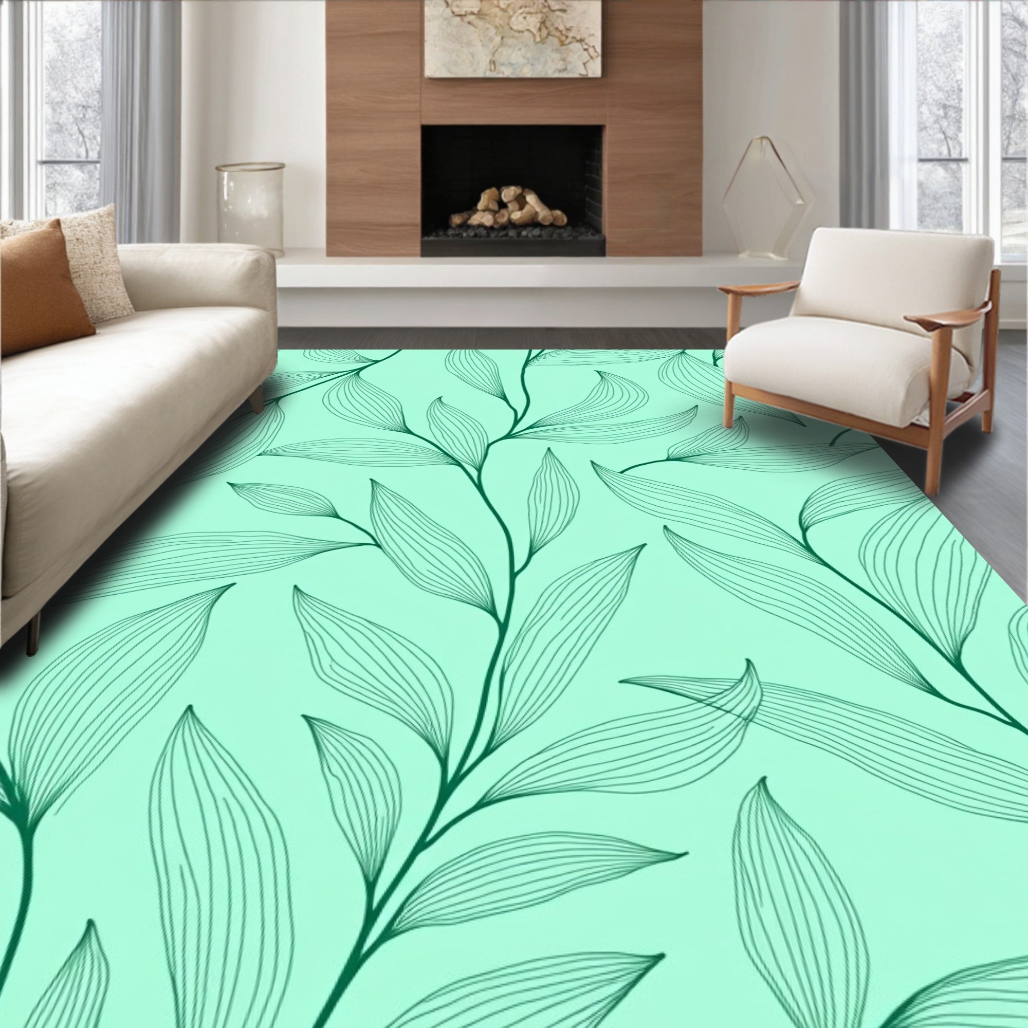 Modern Botanical Leaf Vein Inspired Subtle Textured Floor Covering(Green)