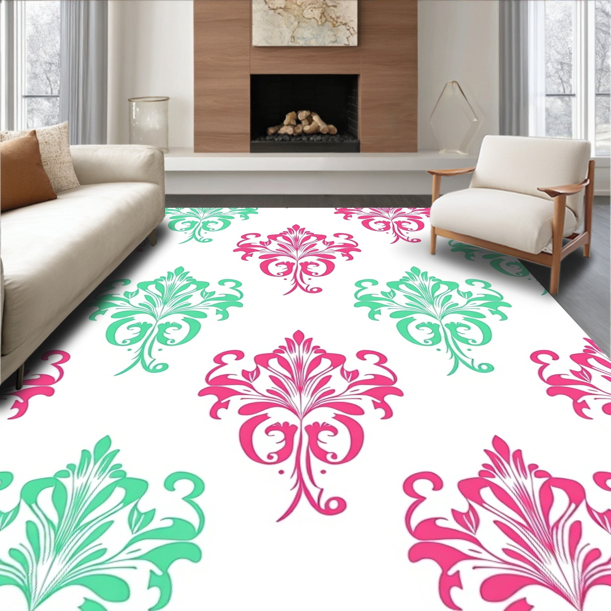 Elegant Botanical Swirl Damask Transitional Symmetrical(Pink)