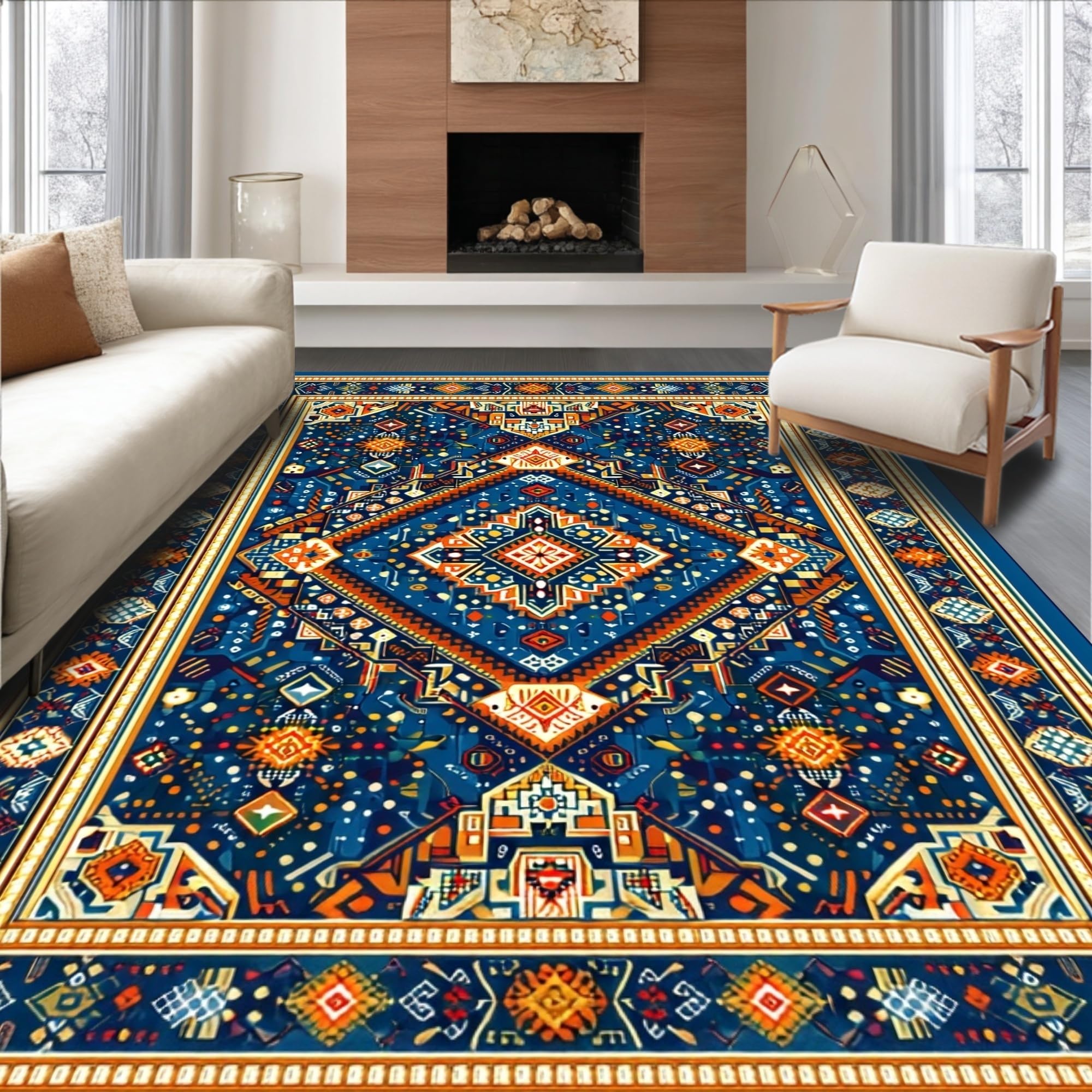 Rustic Vibrant Patterned Tapestry(Blue)