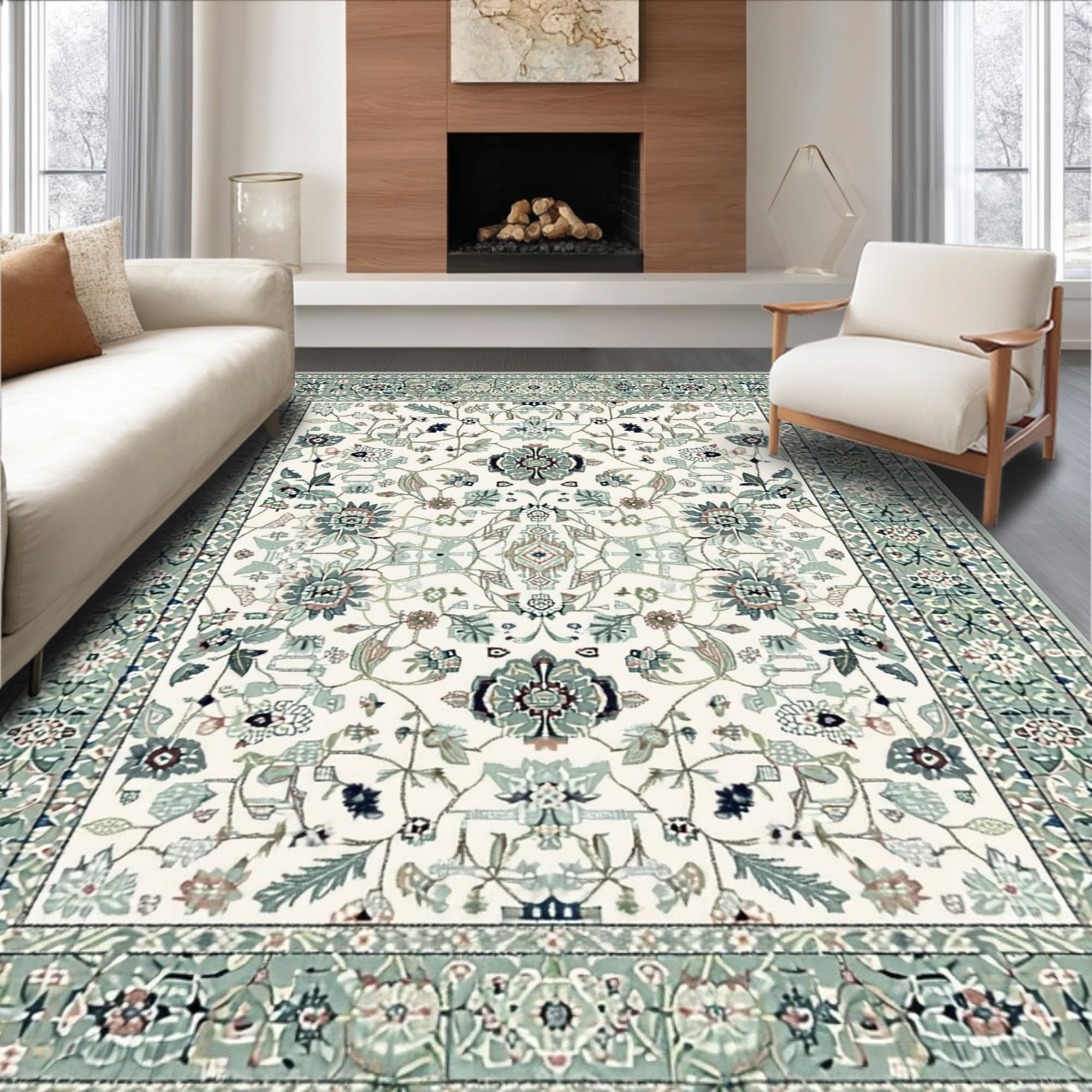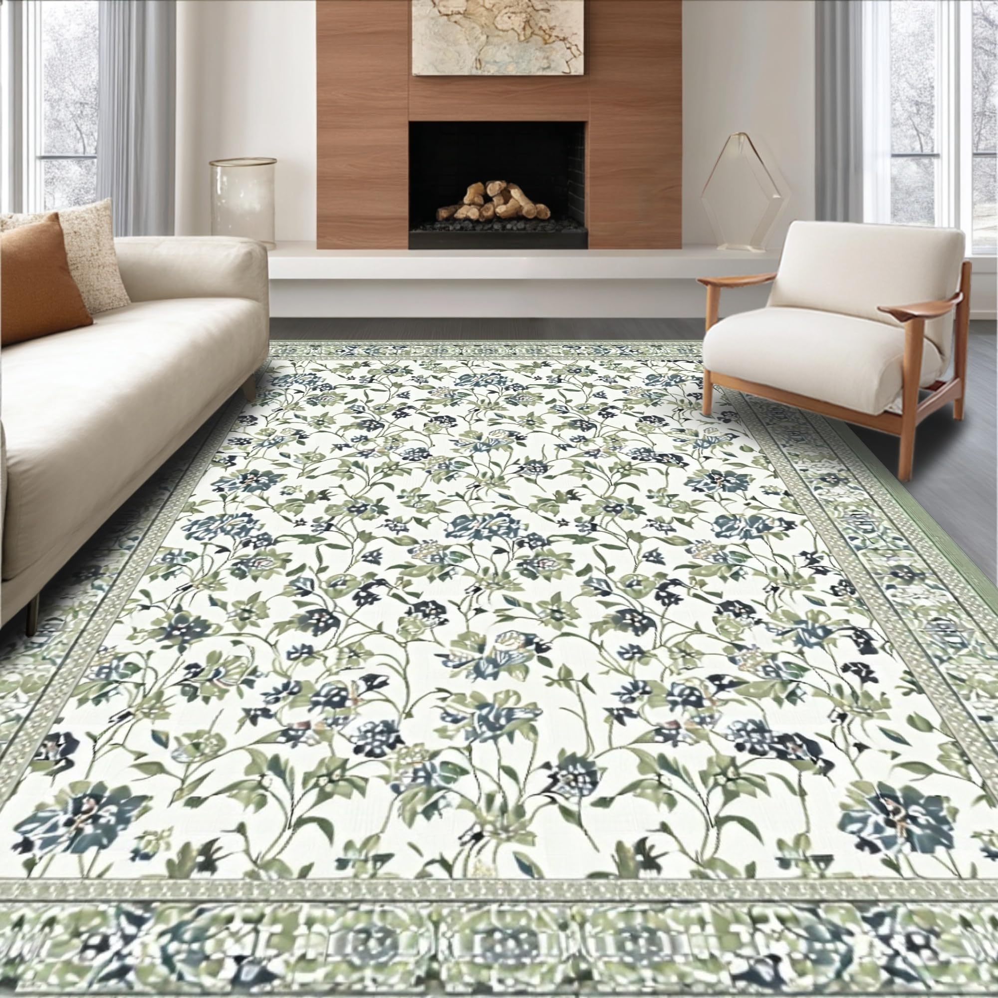 Contemporary Light Green Flourish(Ivory)