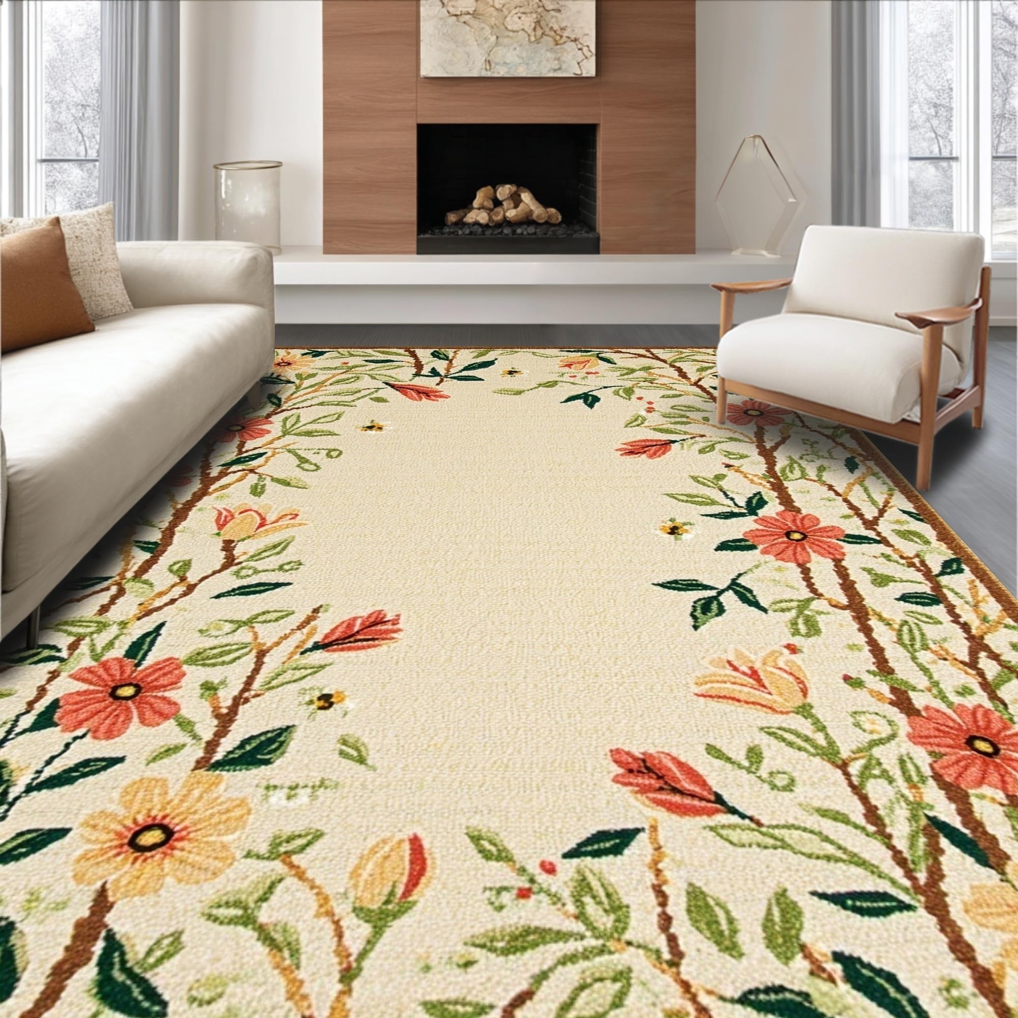 Vibrant Floral Garden Welcome Mat(Ivory)