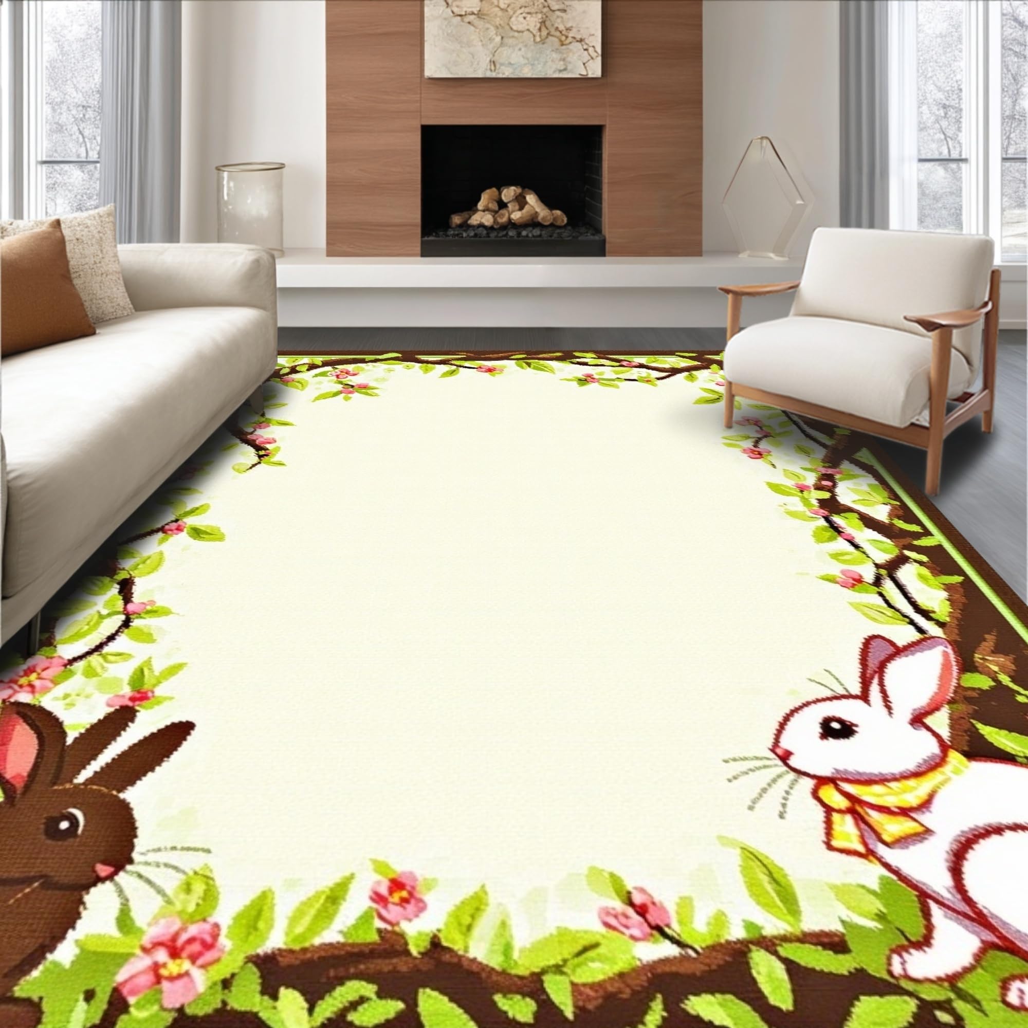 Playful Bunny and Blossom Composition(Beige)