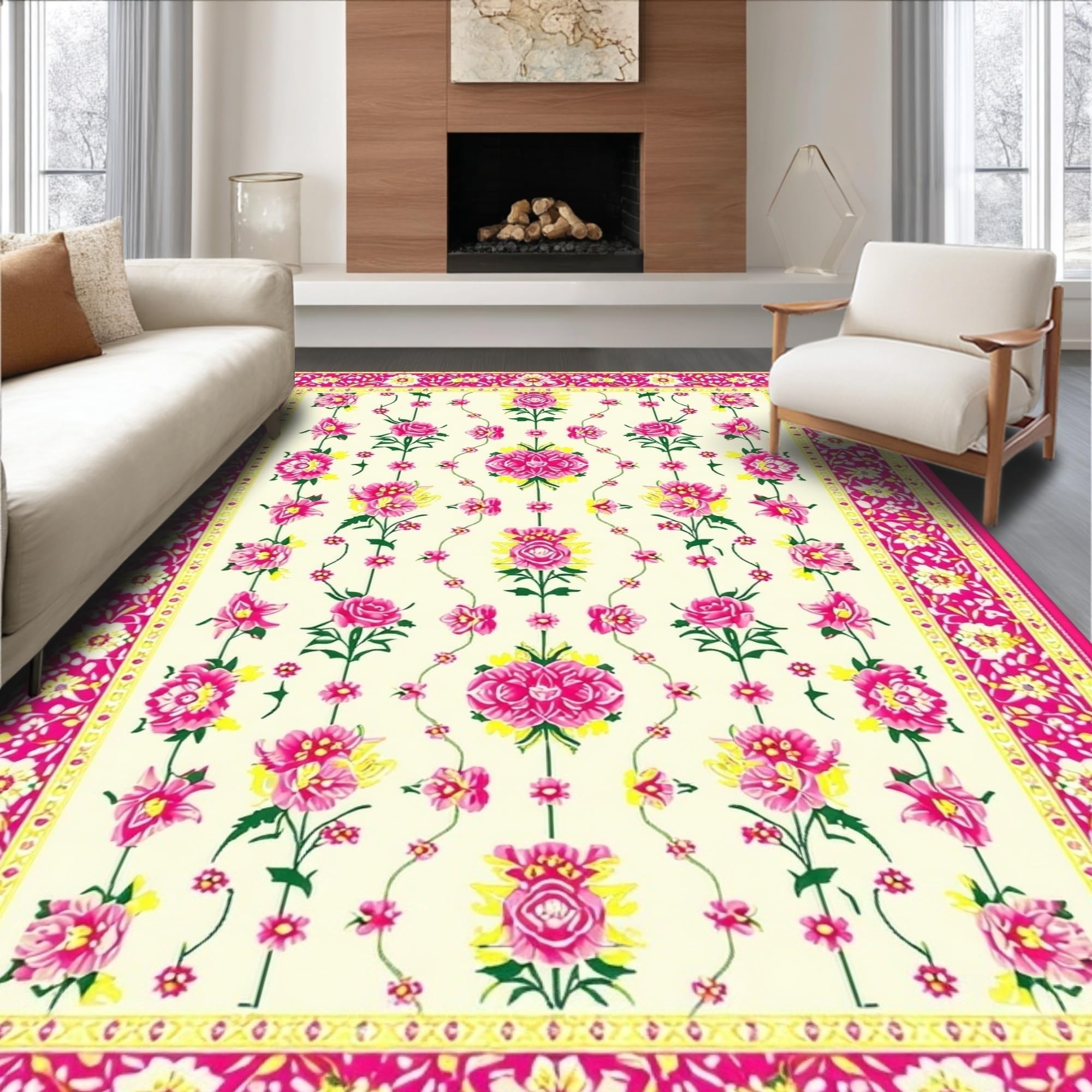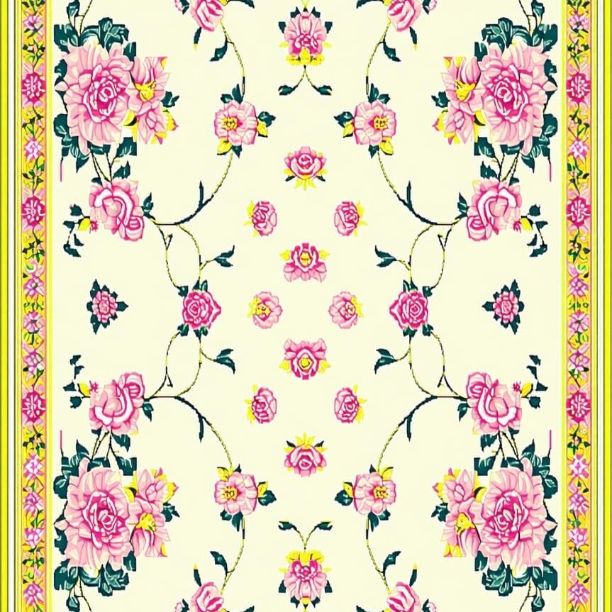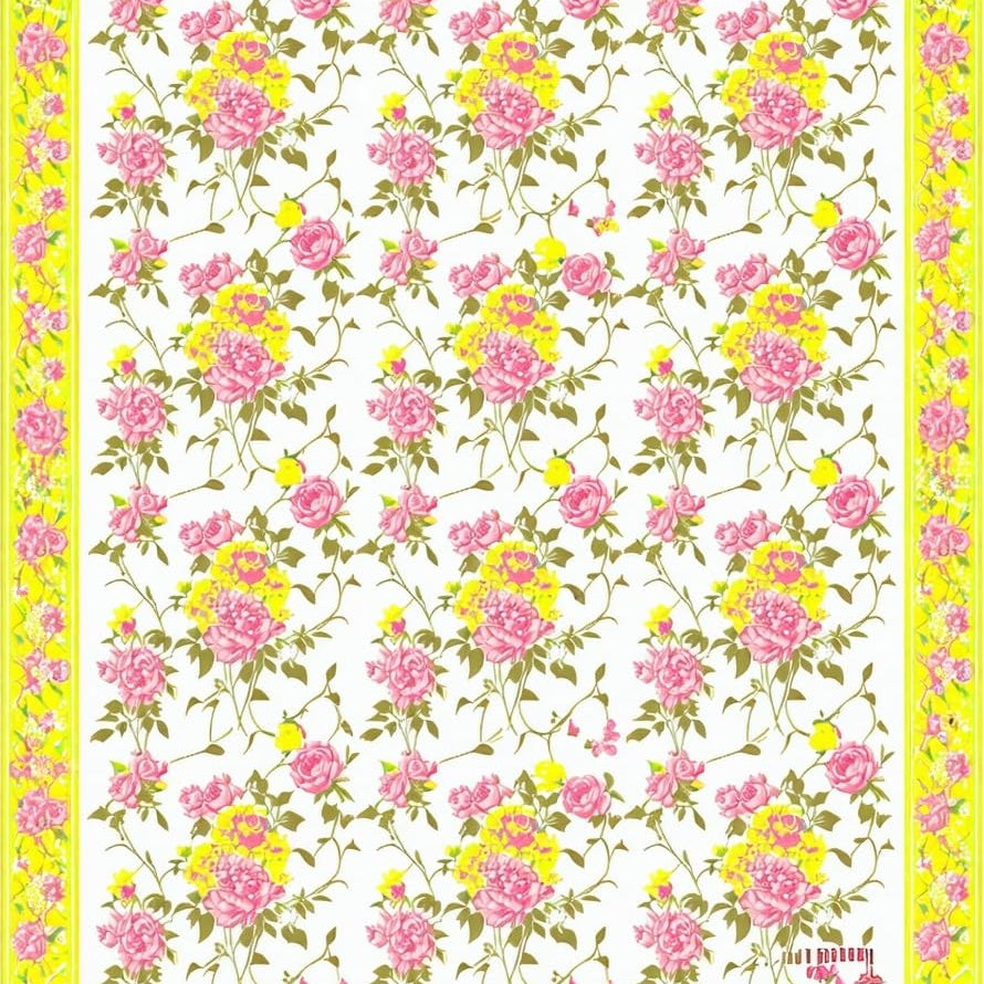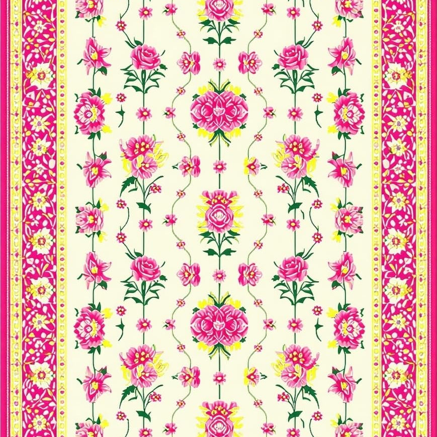 Vibrant Green and Pink Floral Elegance(Ivory)