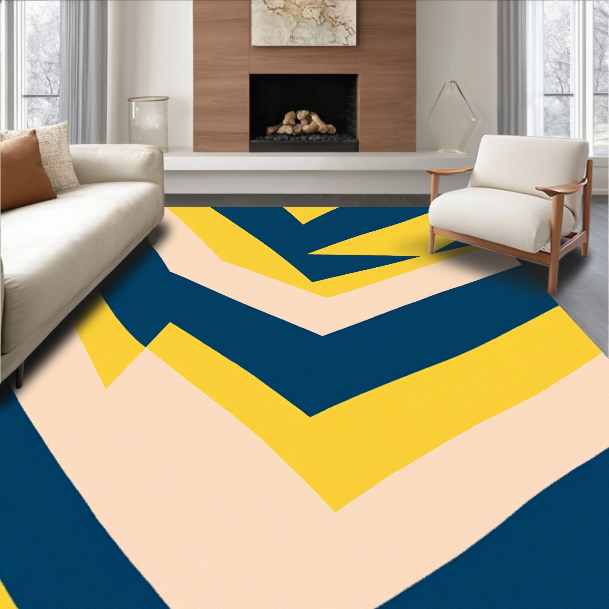 Abstract Chevron Wave Design Floor(Ivory)