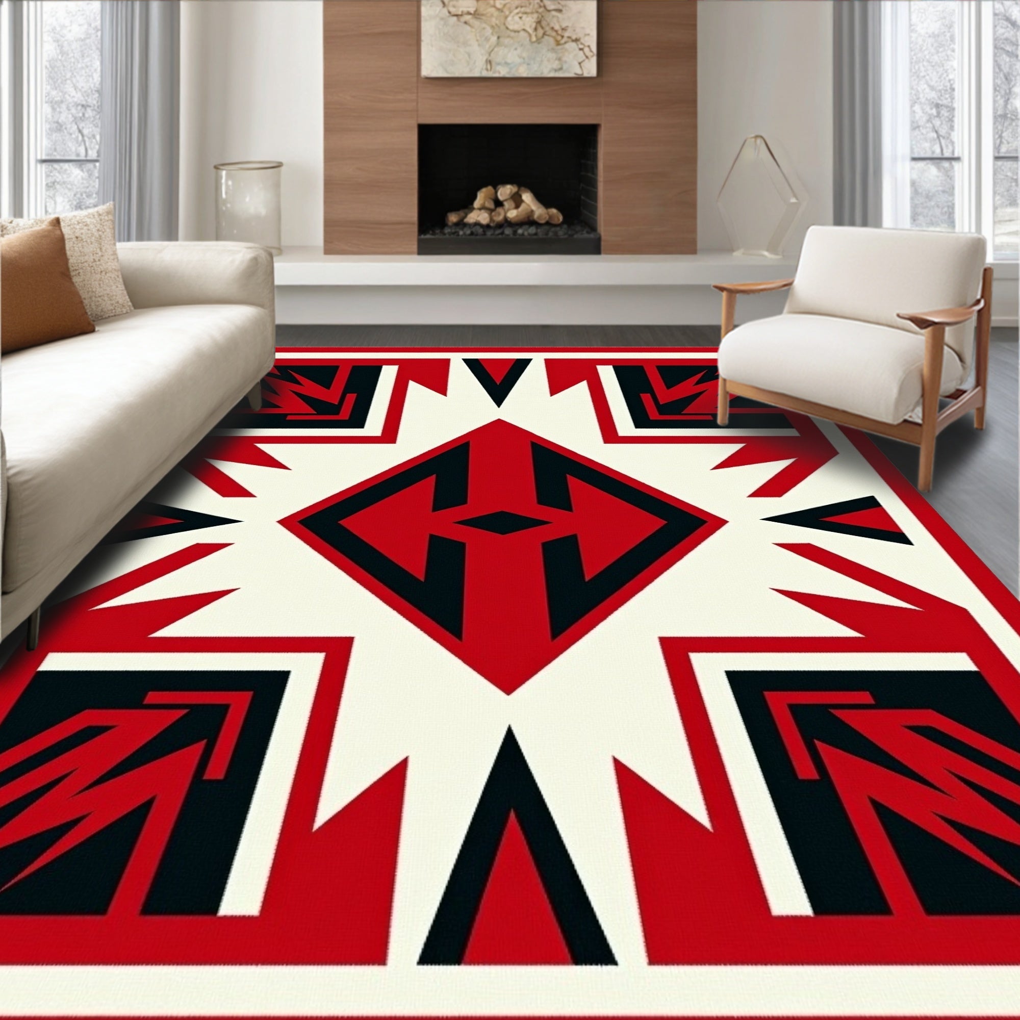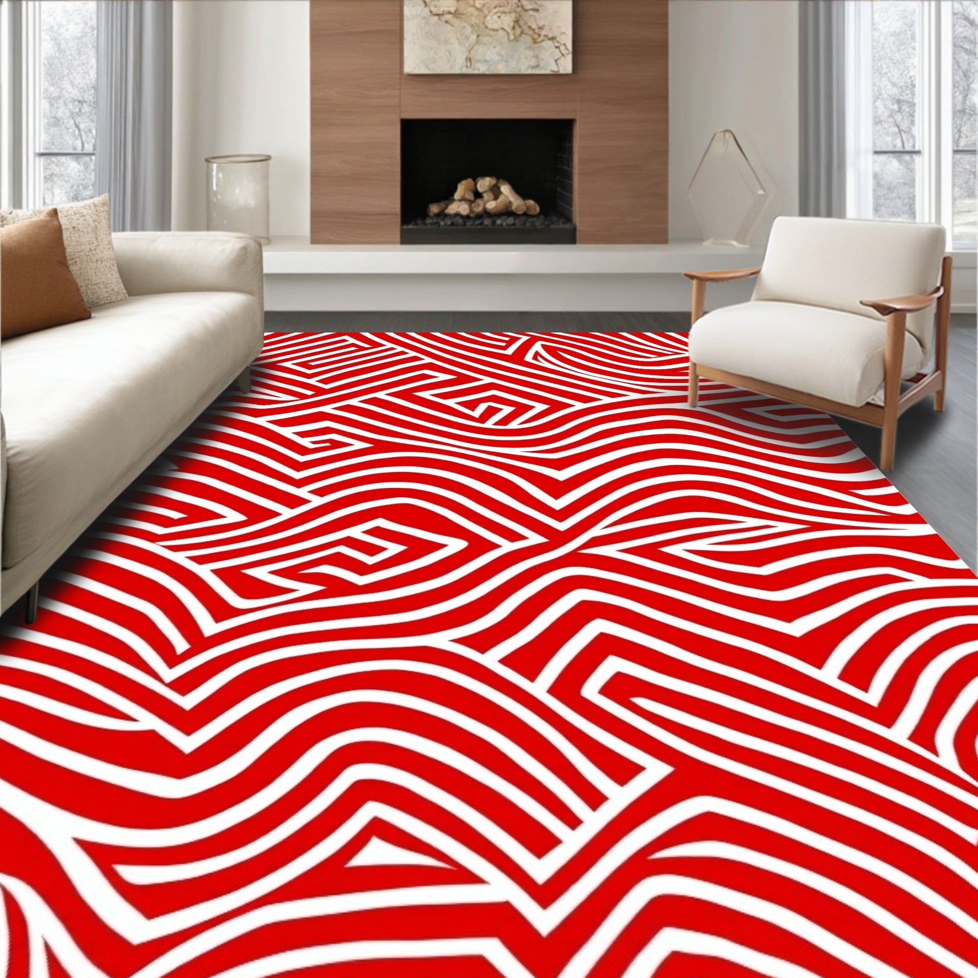 Abstract Chevron Design with Bold Zigzag Motifs(Red)