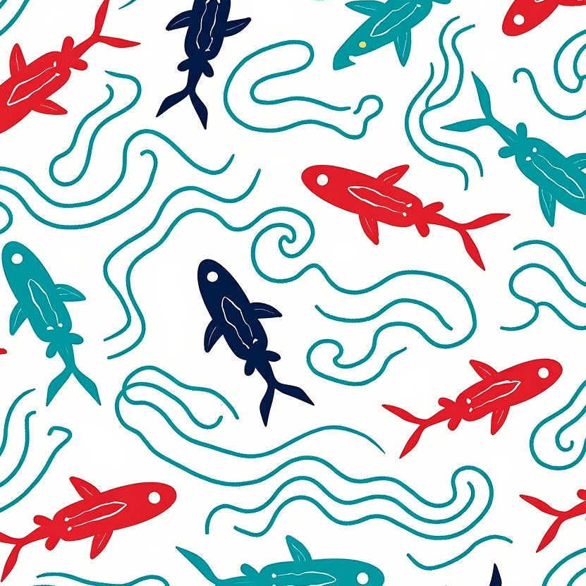 Koi Pond Tranquil Water Ripple Oriental Design(Red)