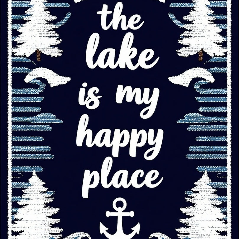 Lakeside Retreat Welcome Area Rug with Happy Place Quote Decorative Entry(Blue)