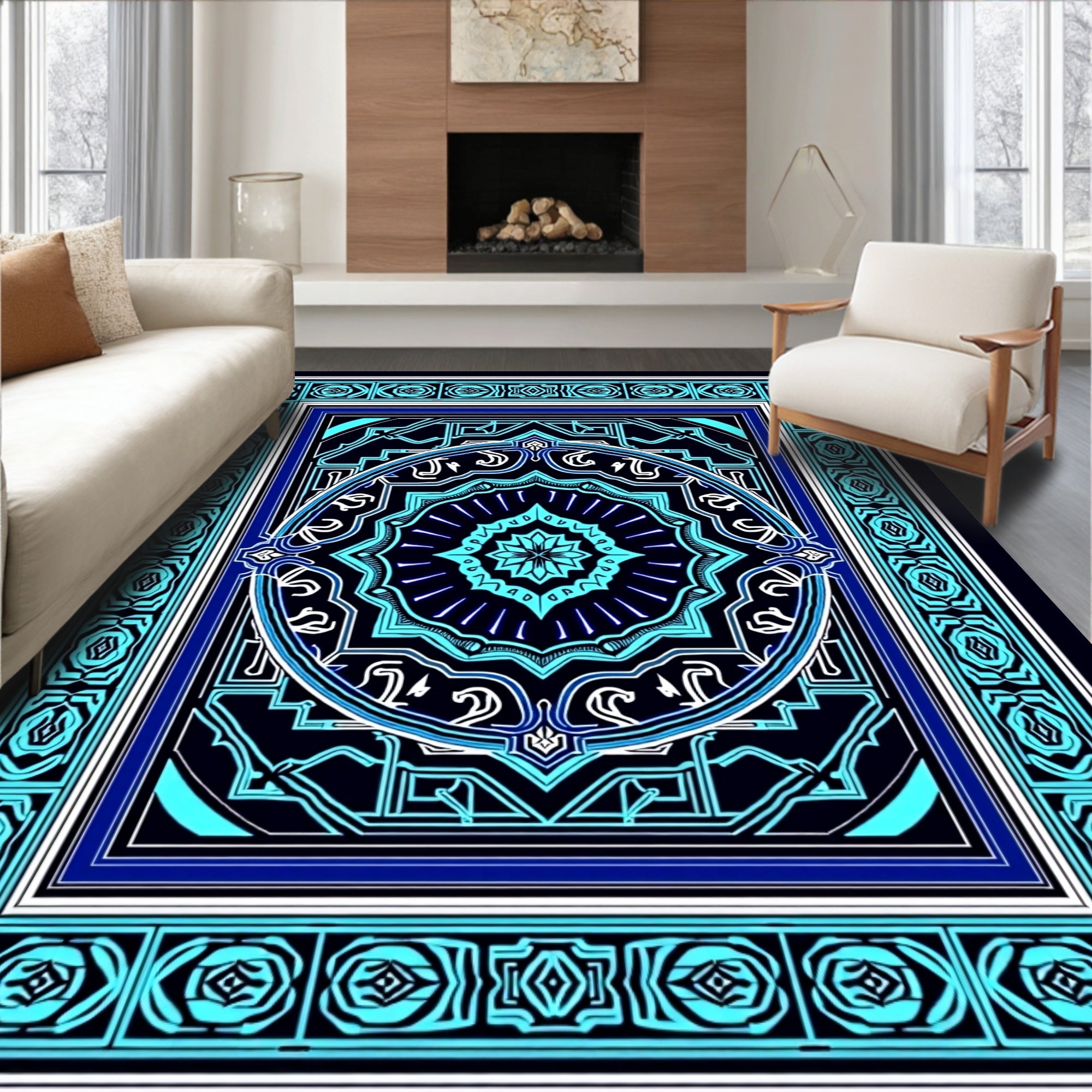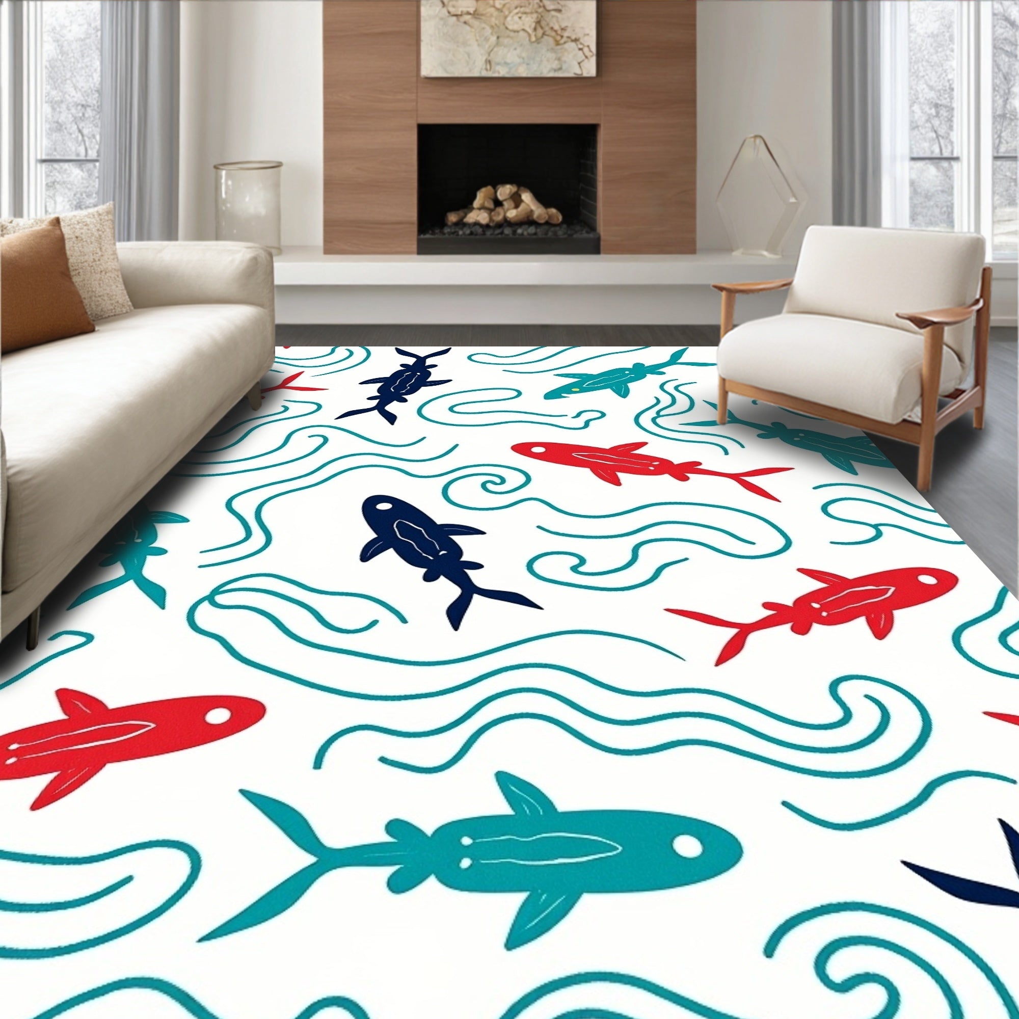 Large Area Rug for Deck Ocean Wave Design(Blue)