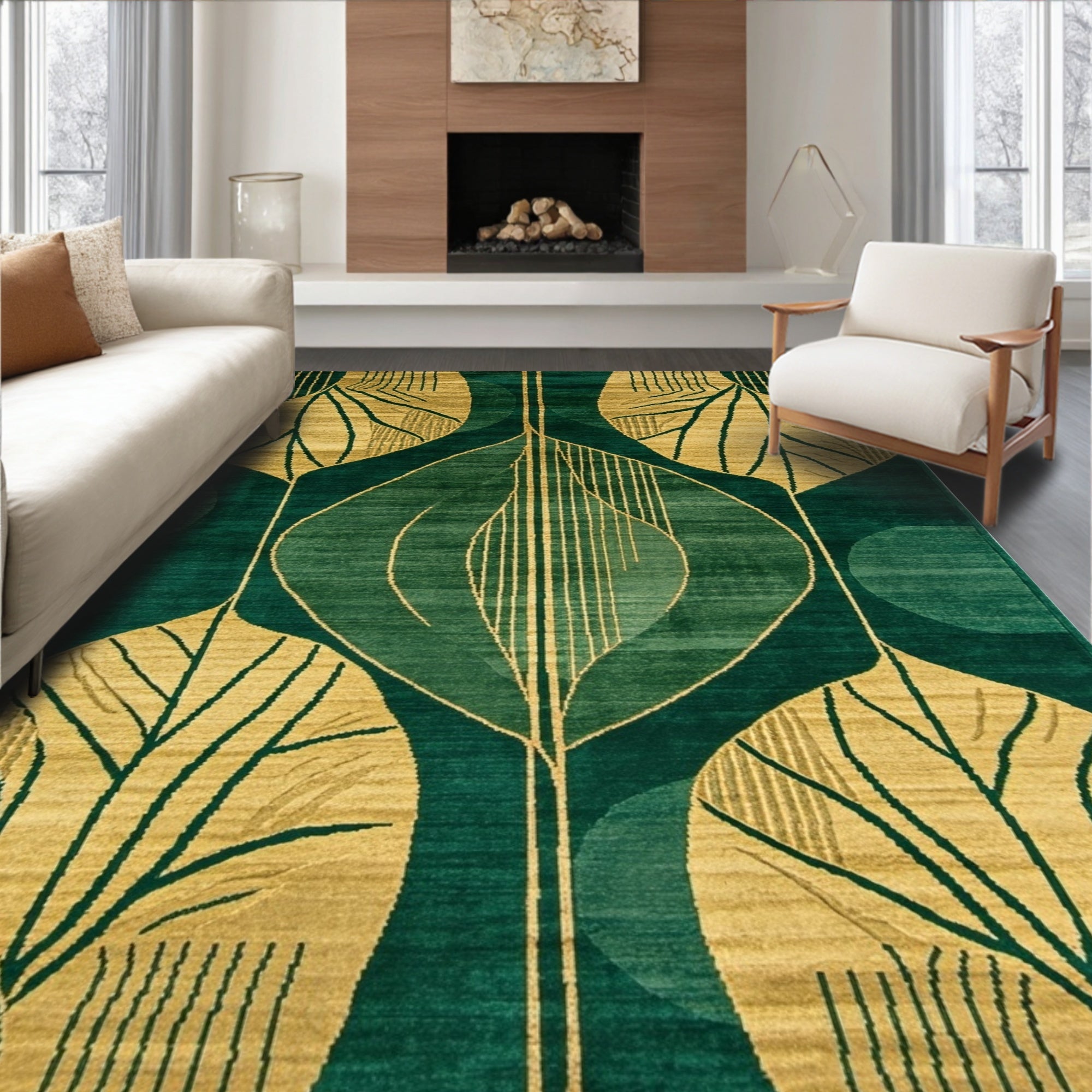 Leaf Shaggy Bath Mat with Non Slip Absorbent Design(Green)