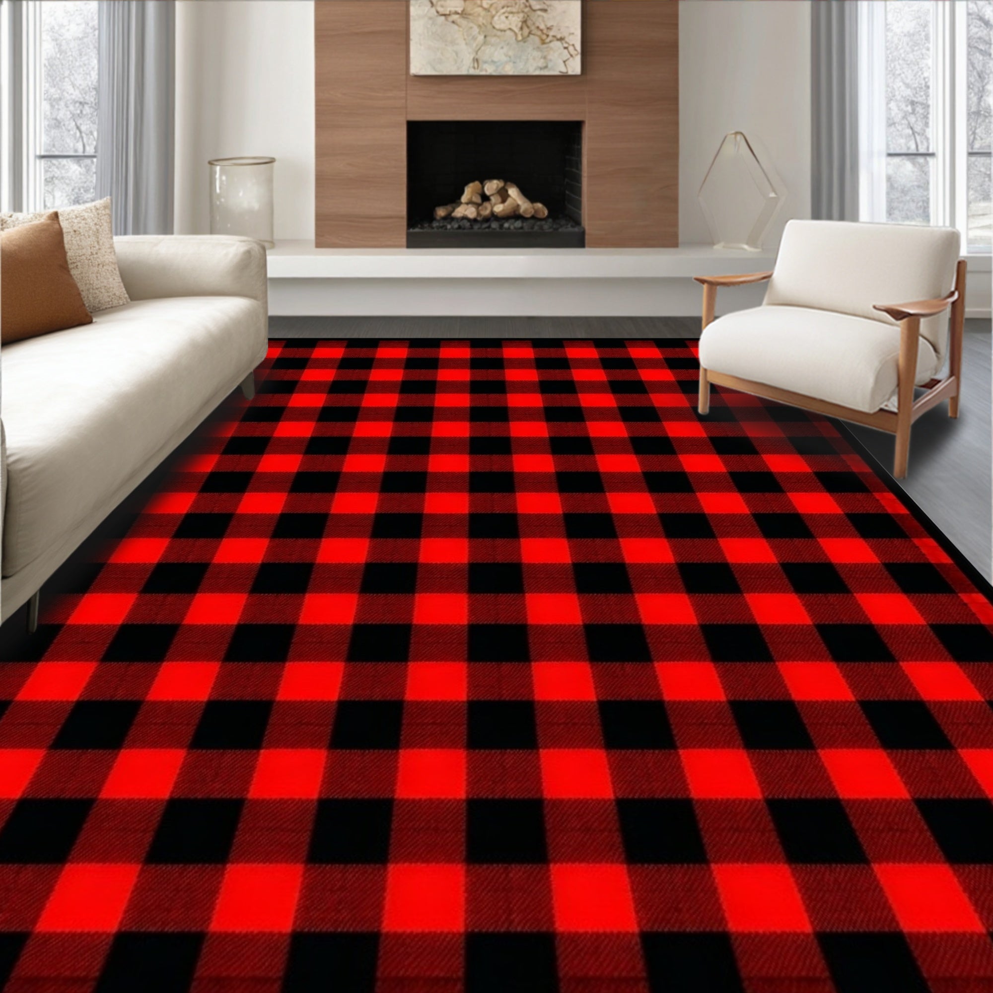 Layering Doormat Rug Buffalo Plaid Carpet Christmas Red Design(Red)