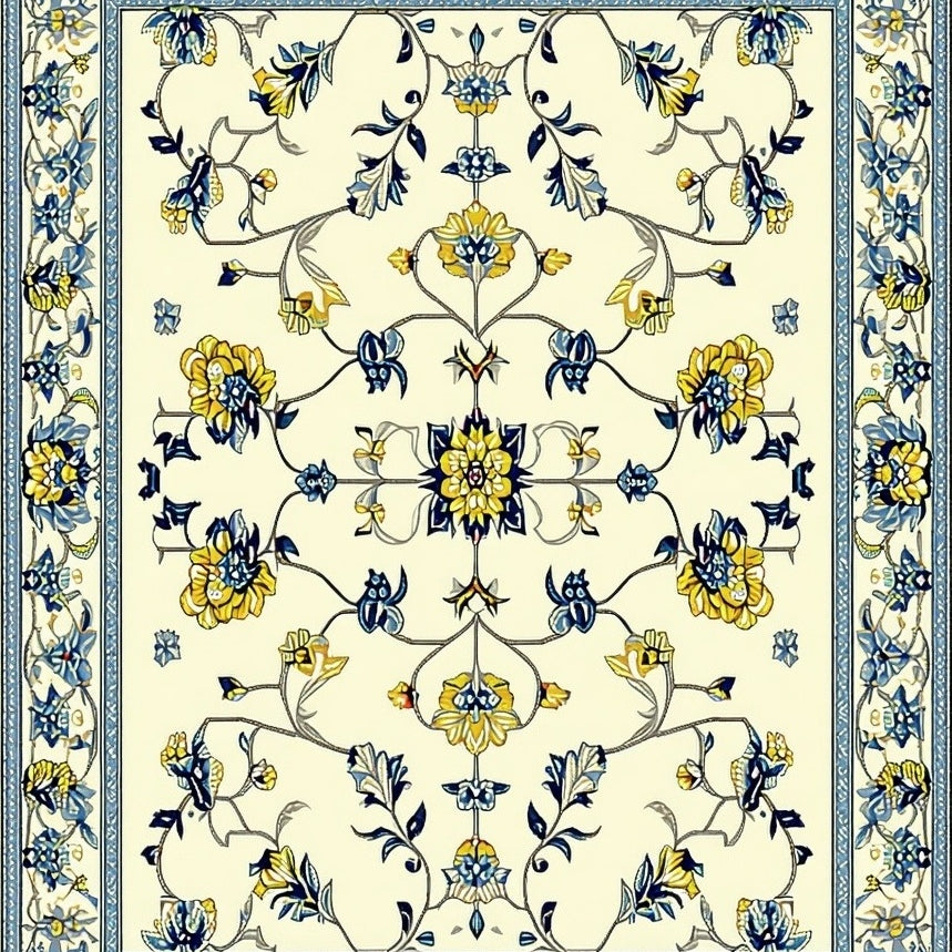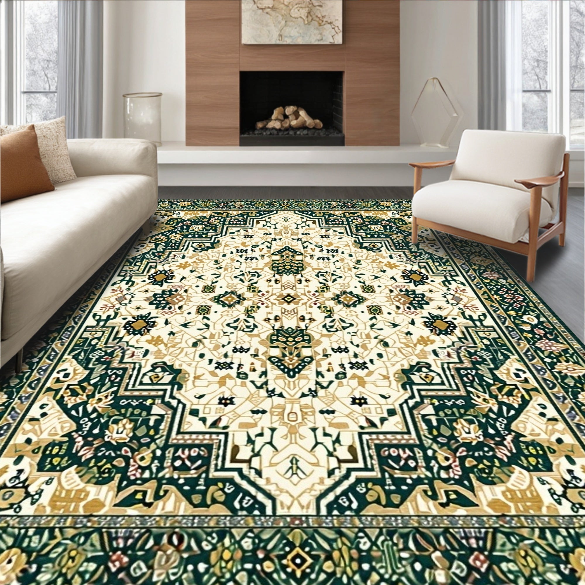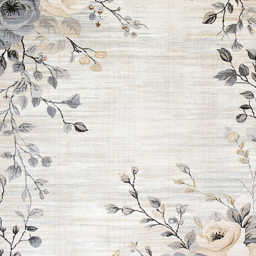 Lightweight Area Non Slip Low Pile Vintage Flower Design(Beige)