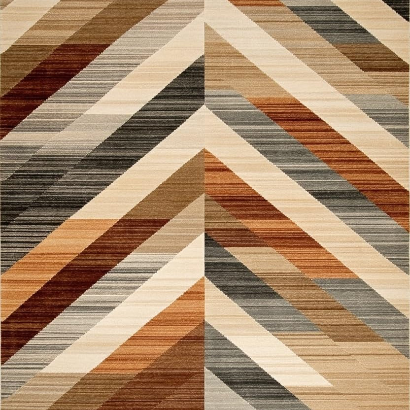 Modern Hallway Runner with Abstract Zigzag Earth Tone Design(Beige)