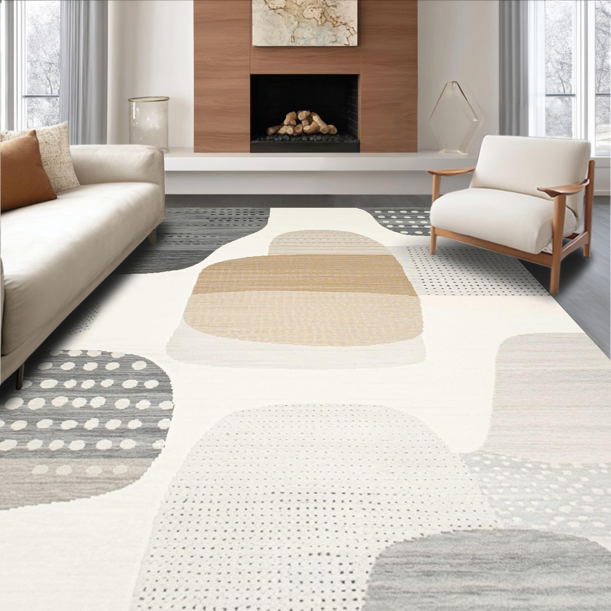 Modern Grey Beige Geometric Spotted Area for Contemporary Spaces(Gray)