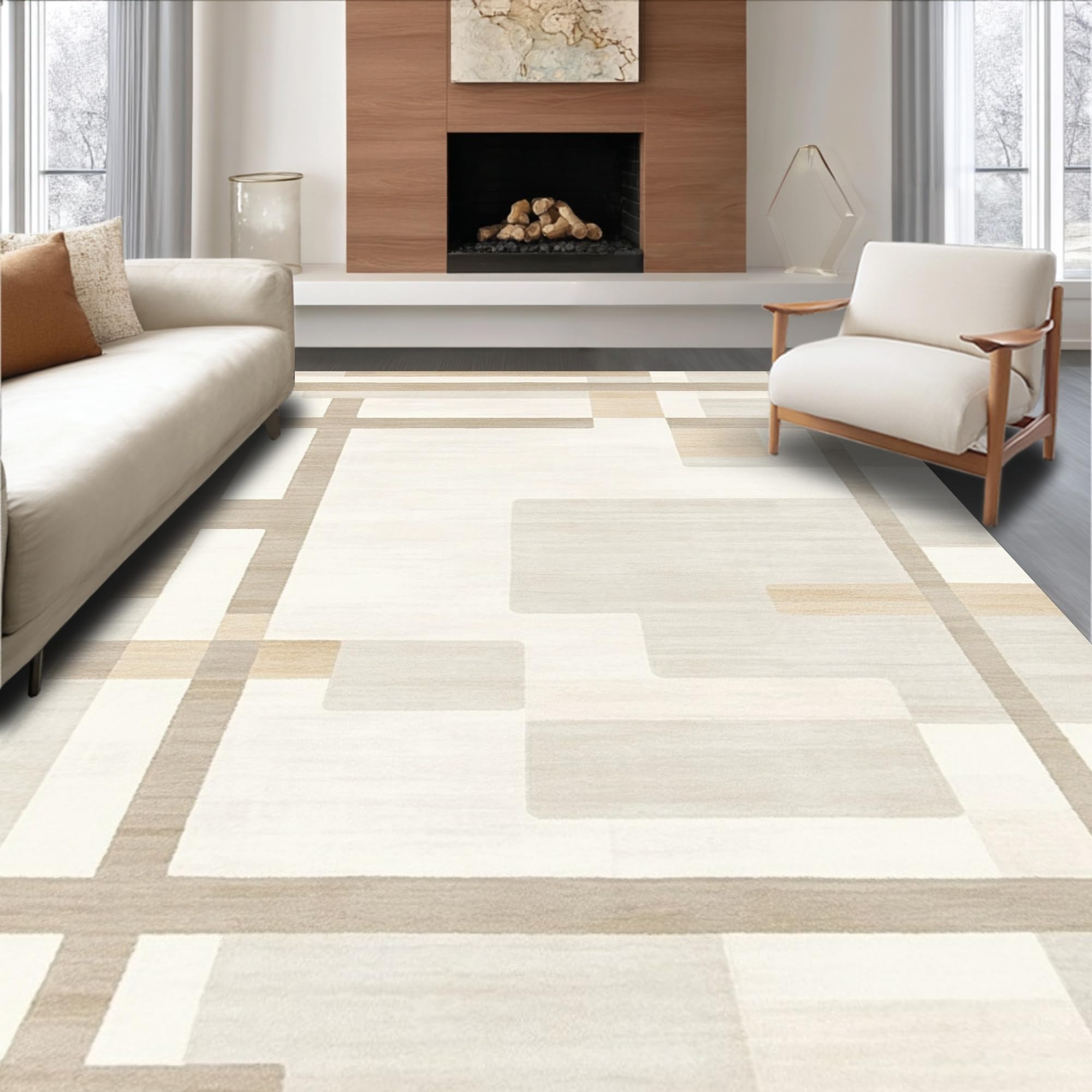 Modern Ivory Beige Area Effortless Maintenance Non Shedding(Beige)