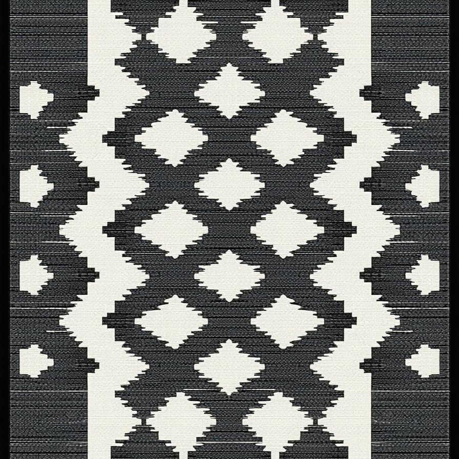 Modern Minimalist Striped Woven With Dramatic Contrast Design(Black)