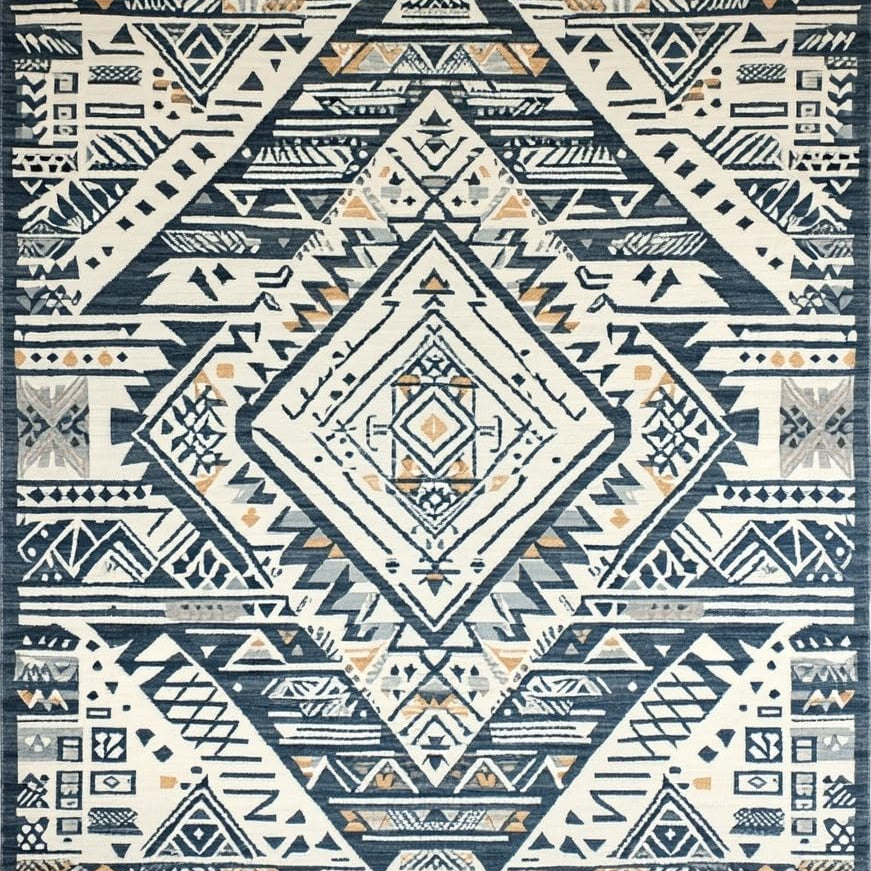 Modern Style Tribal Beige with Ornate Floral Motifs(Beige)