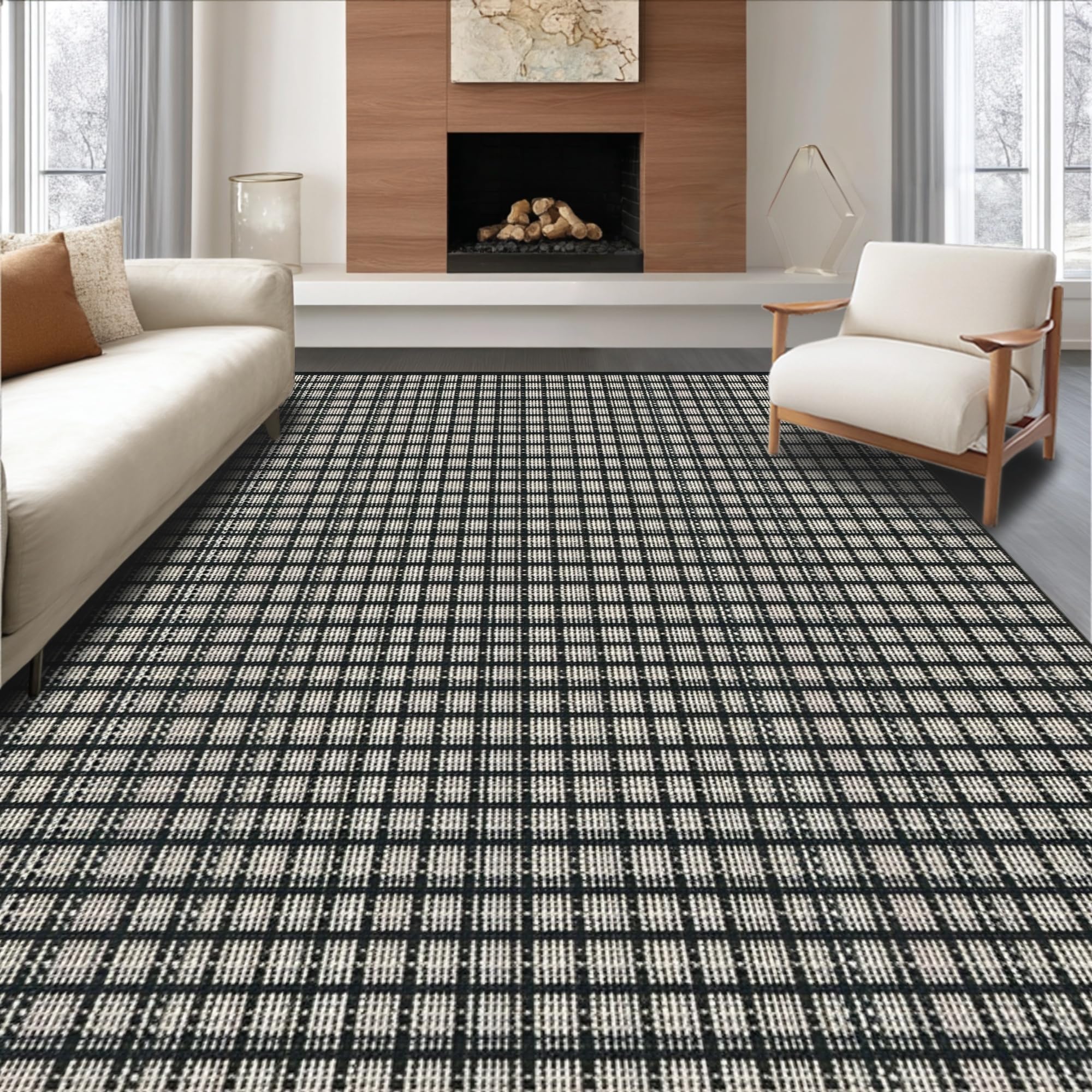 Modern Striped Welcome Area with Bold Black Lines and Tan Accents Entrance(Beige)