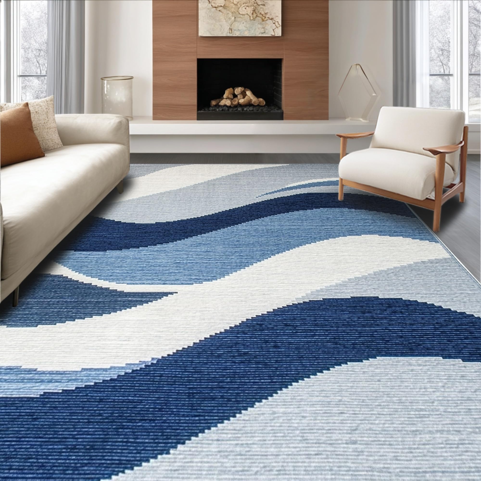 Modern Surf Culture Runner with Wave Geometry and Playful Character Emblems(Blue)