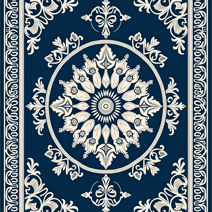 Enchanting Medallion Damask Vintage Baroque Scroll Embellishment (Blue)