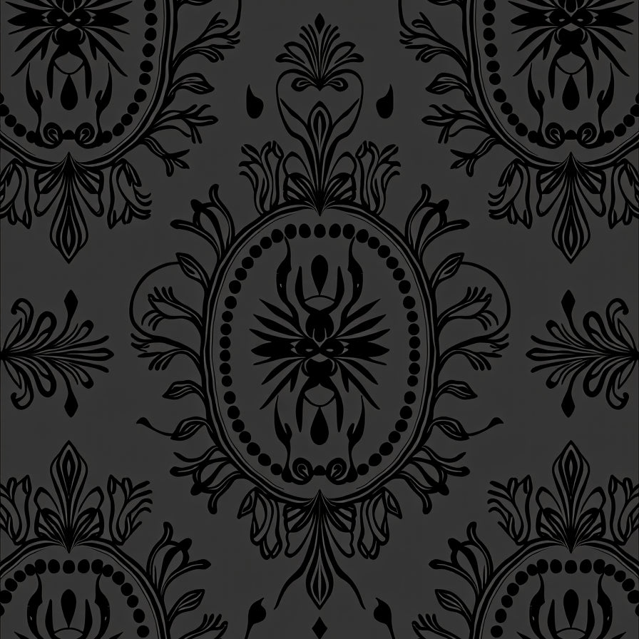 Enchanting Paisley Botanical Curvy Floral Damask(Black)