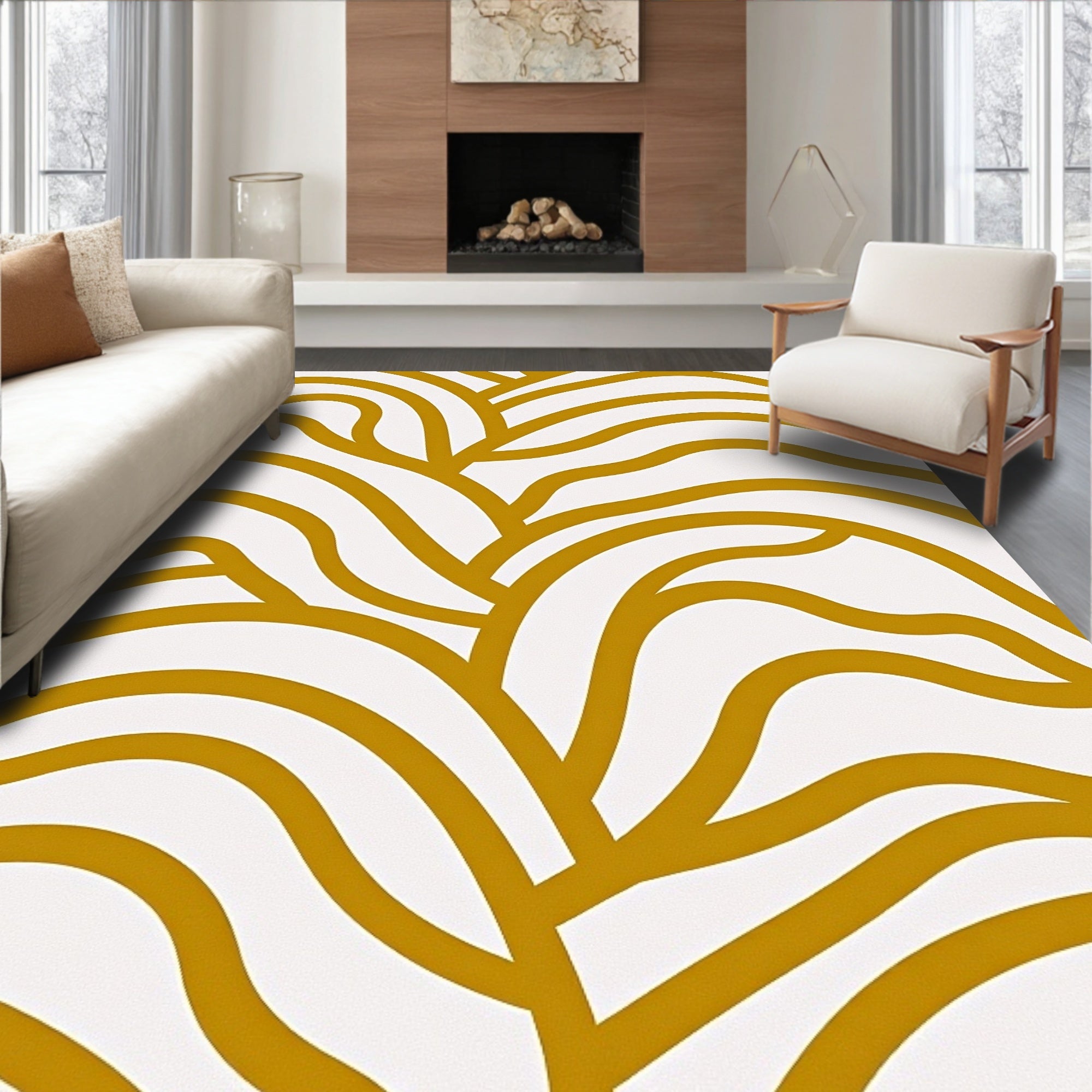 Abstract Circular Wave Design With Overlapping Scrolls(Beige)