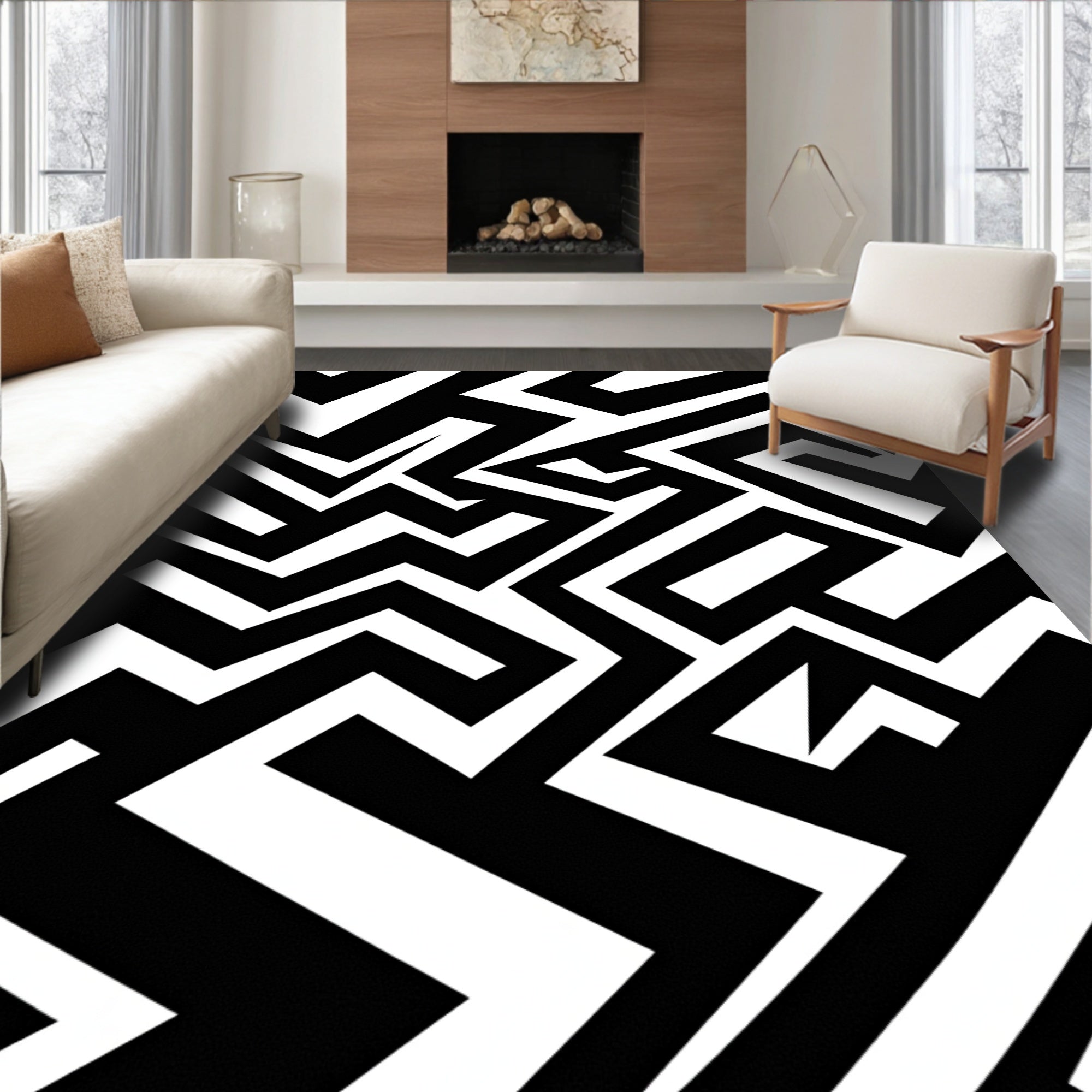 Abstract Chevron Zigzag with Contemporary Minimalist(Black)