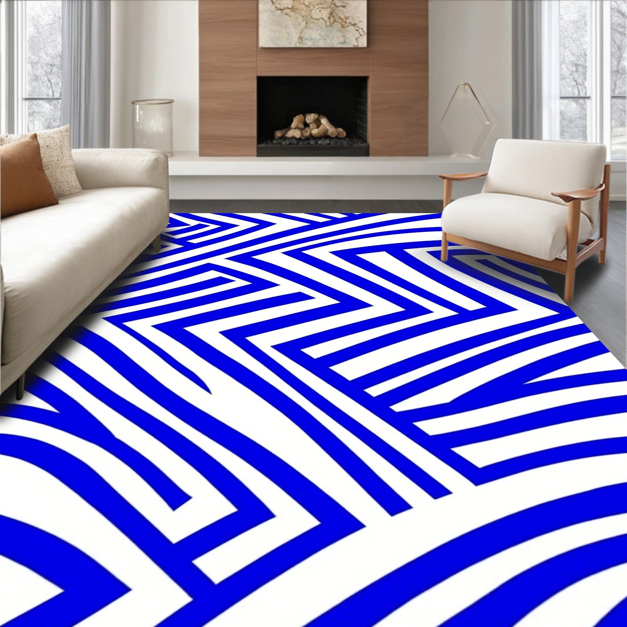 Abstract Chevron Zigzag Design with Bold Striped Accents(Blue)