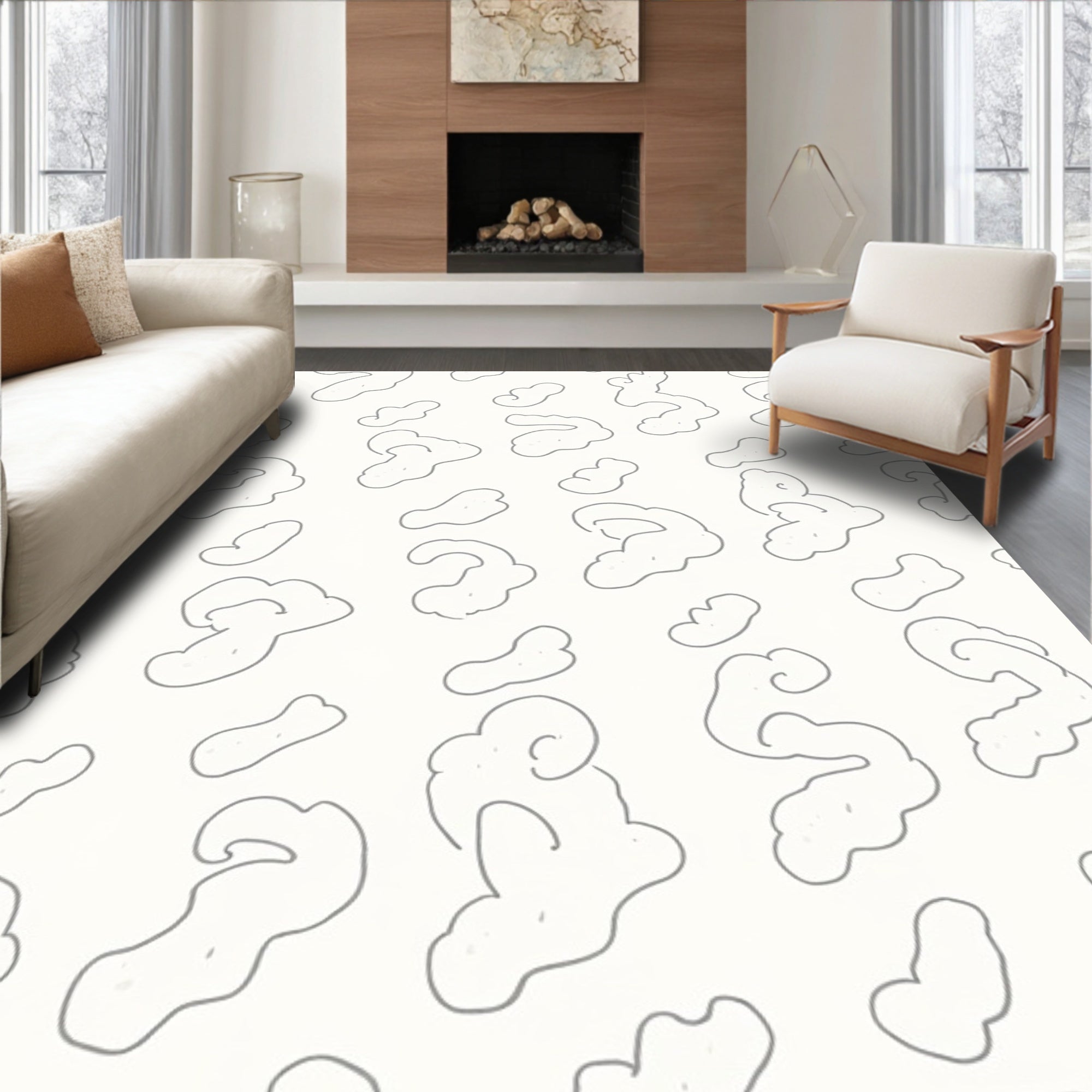 Abstract Cloud Modern with Subtle Swirling Motifs(White)