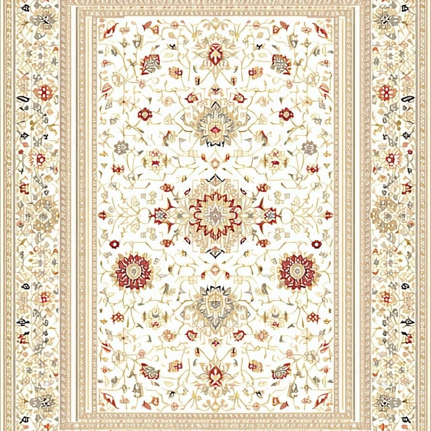 Beige Faux Cashmere Bath Intricate Floral Motifs with Gold Accents(Beige)