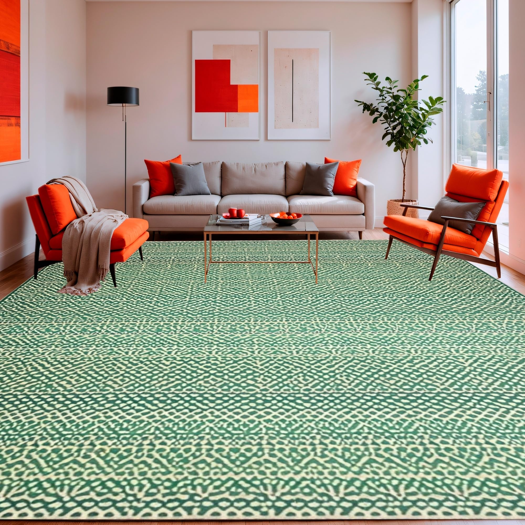 Beige Deep Green Interlaced Diamond Motifs(Green)