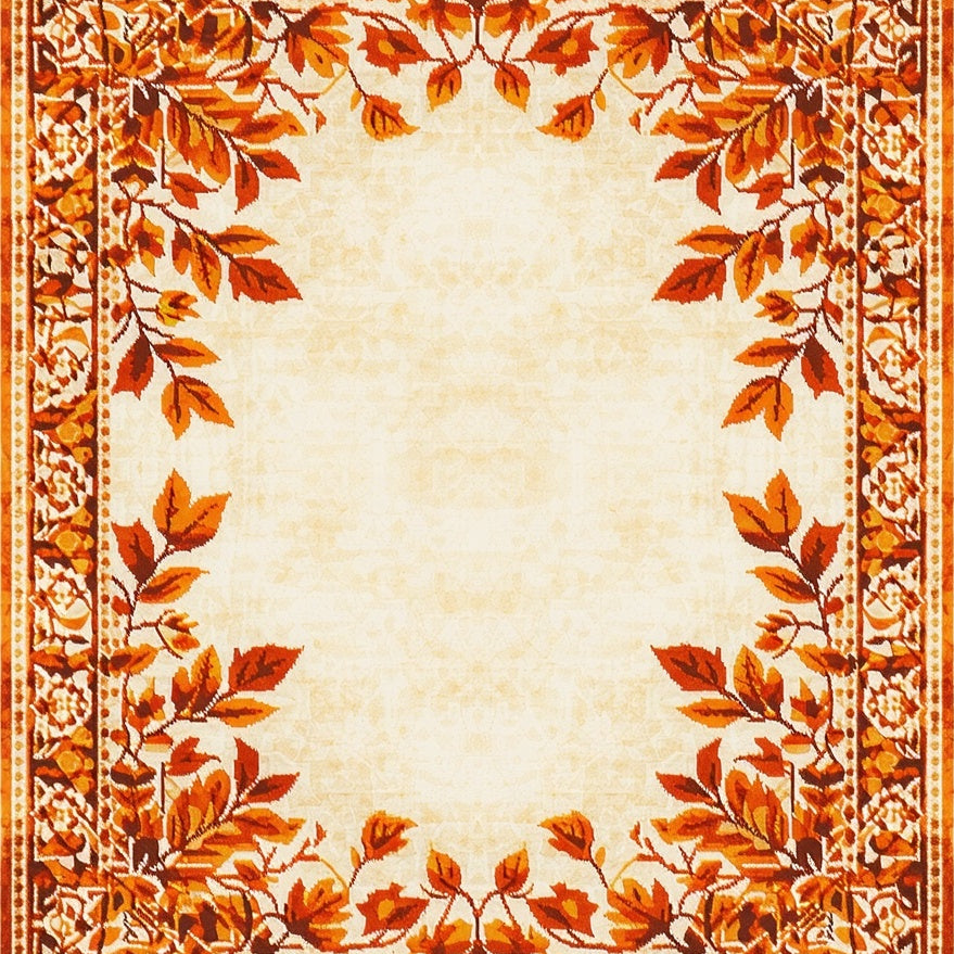 Autumn Harvest Medallion Area with Rustic Burnt Orange Leaf Design(Beige)