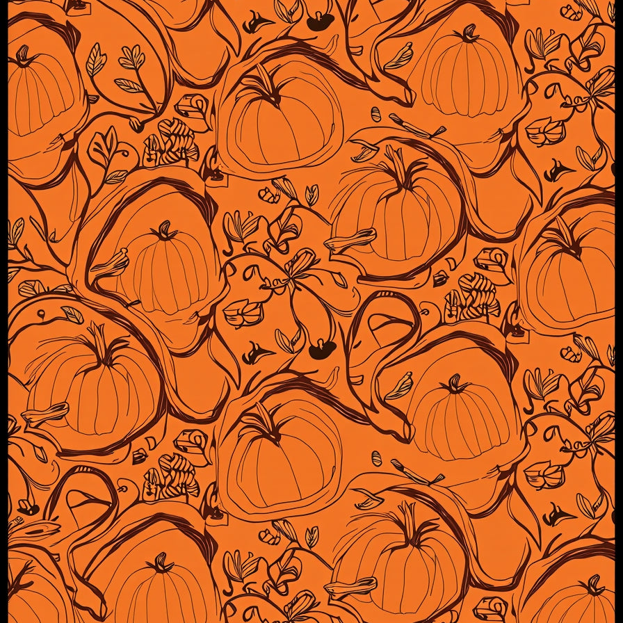 Autumn Harvest Moon Half Circle Spooky Season Pumpkin Motifs(Orange)
