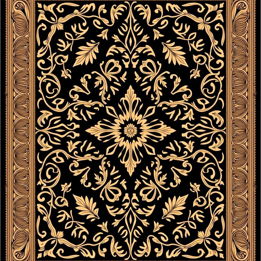 Autumn Harvest Damask with Ornamental Leaf Scrollwork(Black)