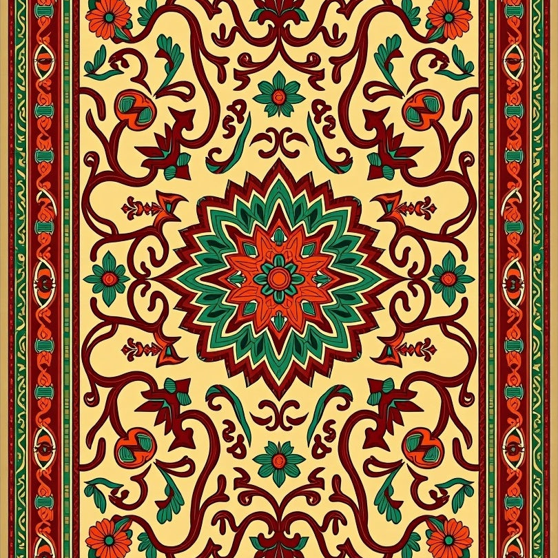 Autumn Harvest Medallion with Intricate Botanical Motifs(Beige)