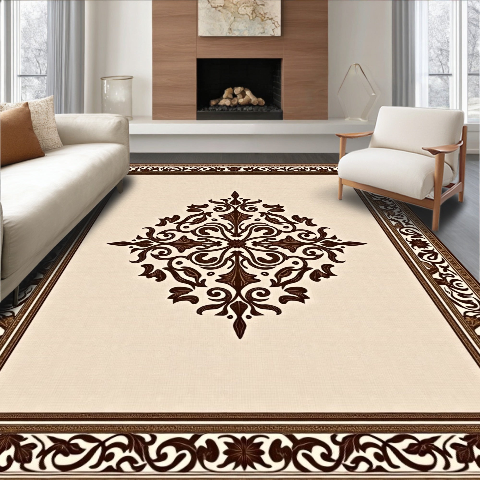 Autumn Harvest Medallion with Scrollwork Vine Motifs(Beige)