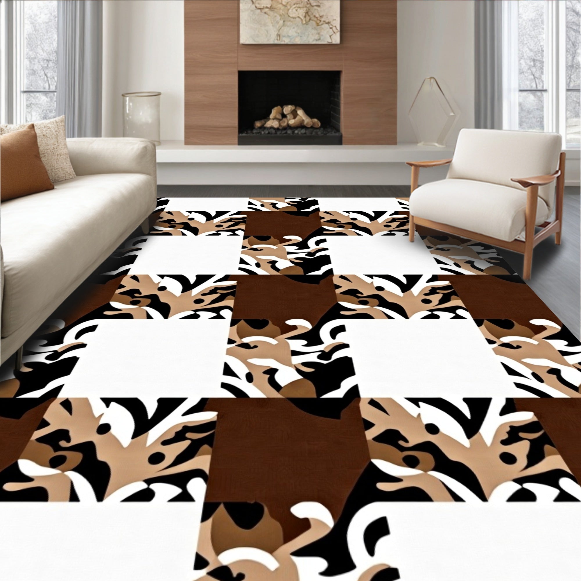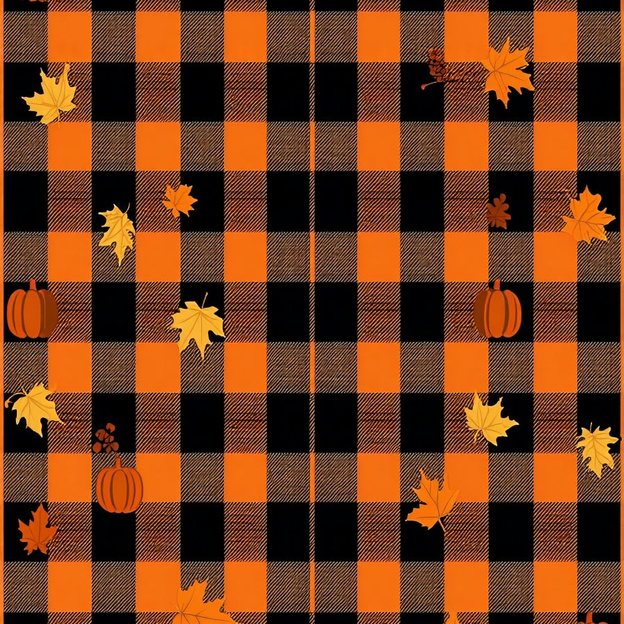 Autumn Harvest Plaid Area Rug Festive Fall Doormat with Pumpkin & Leaves Design(Black)