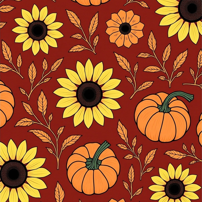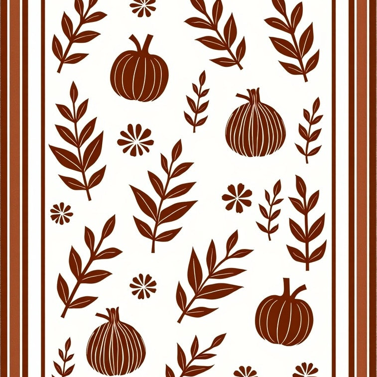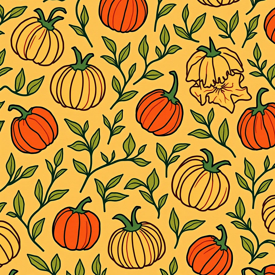 Autumn Harvest Pumpkin Motif with Vine Border Design(Orange)