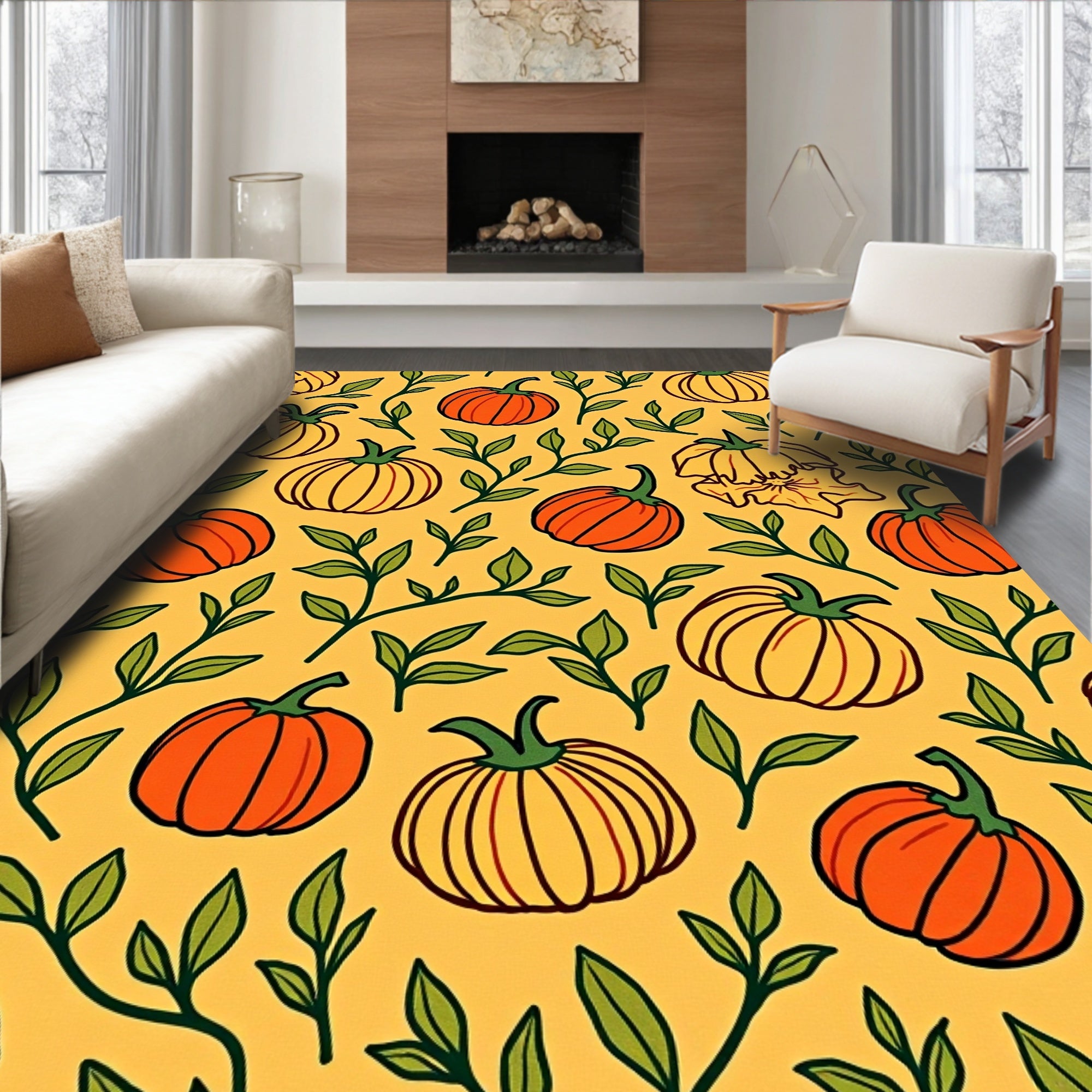 Autumn Harvest Pumpkin Area Rug Festive Fall Welcome Mat(Orange)