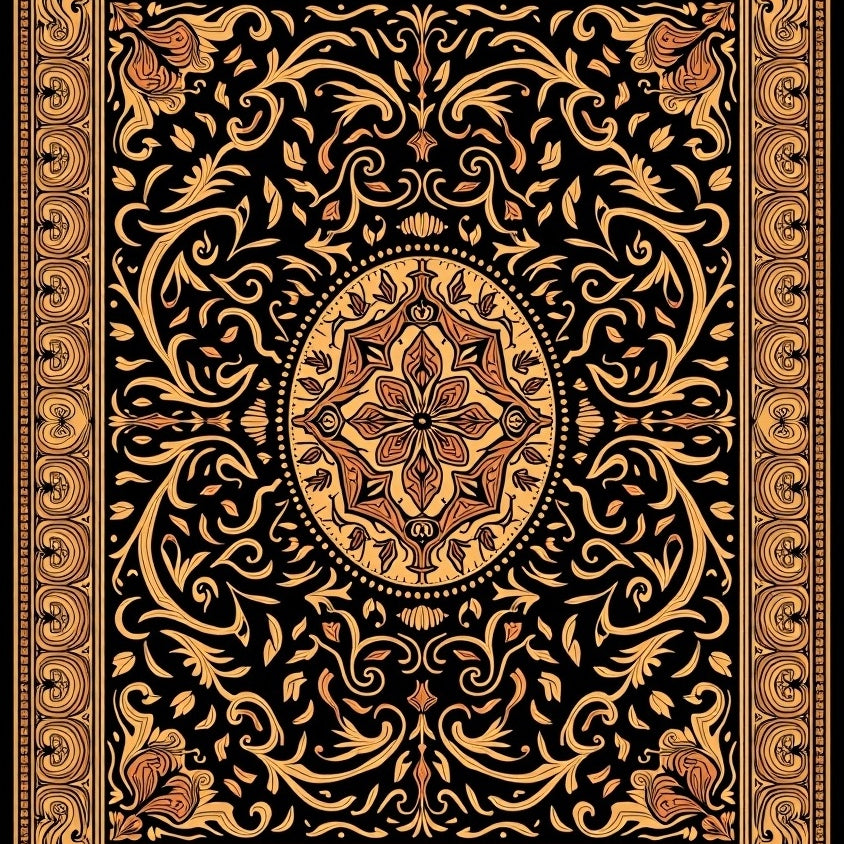 Autumn Paisley Damask with Ornate Botanical Scrollwork(Black)