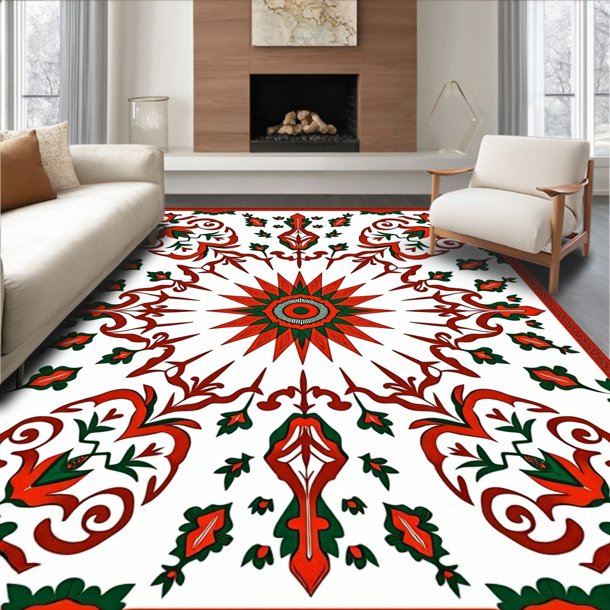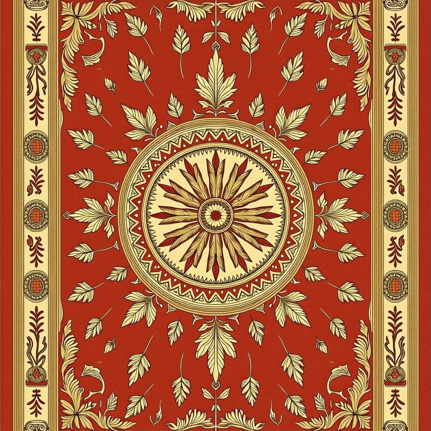 Autumn Leaves Medallion Vintage Tapestry Design with Rustic Charm(Red)