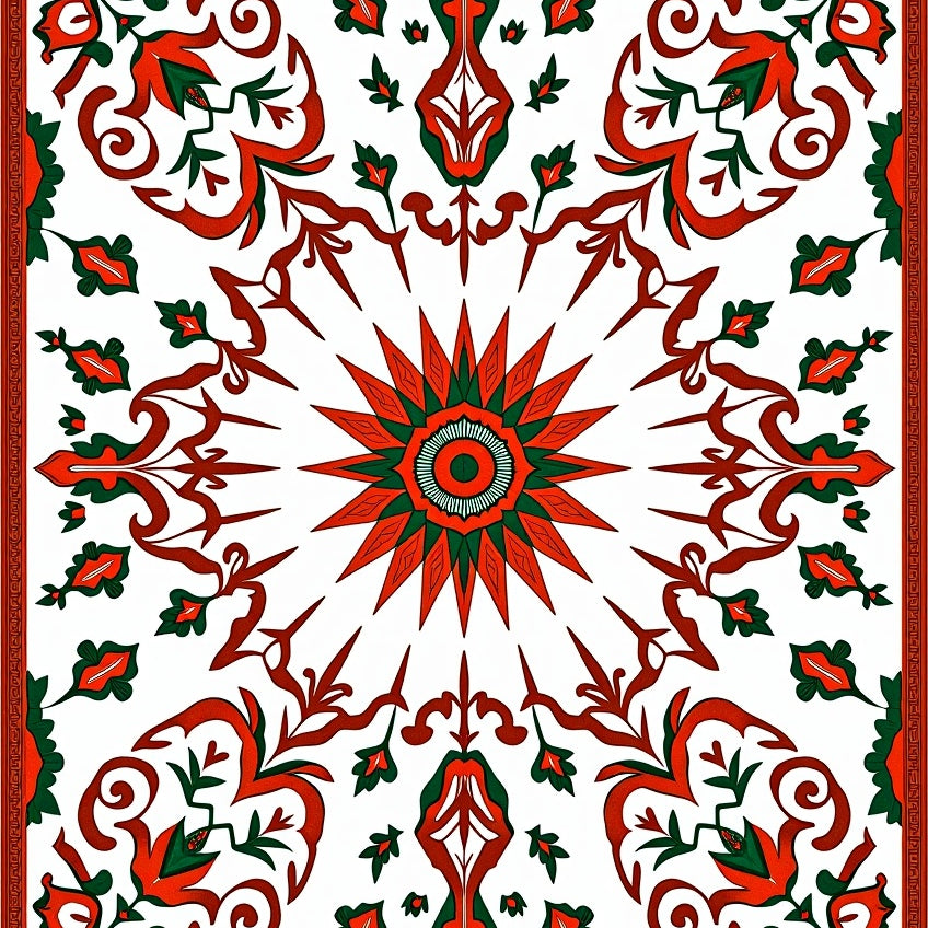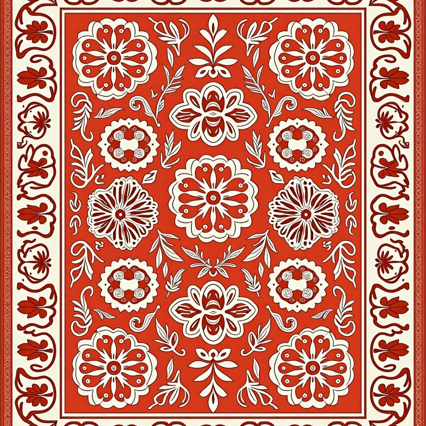 Autumn Harvest with Intricate Botanical Motifs(Red)