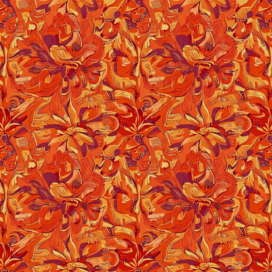 Autumn Meadow Floral Interlocking Vine(Orange)