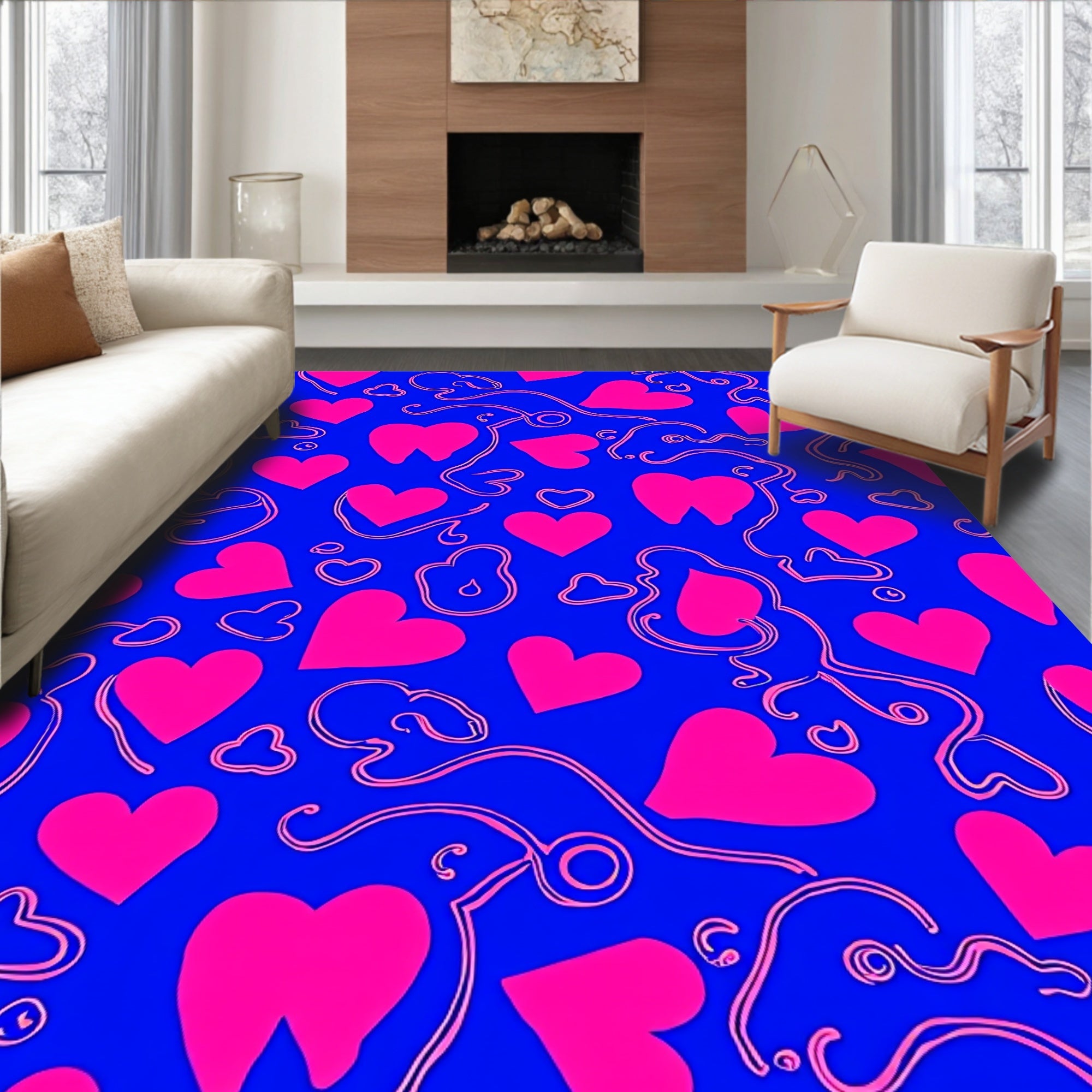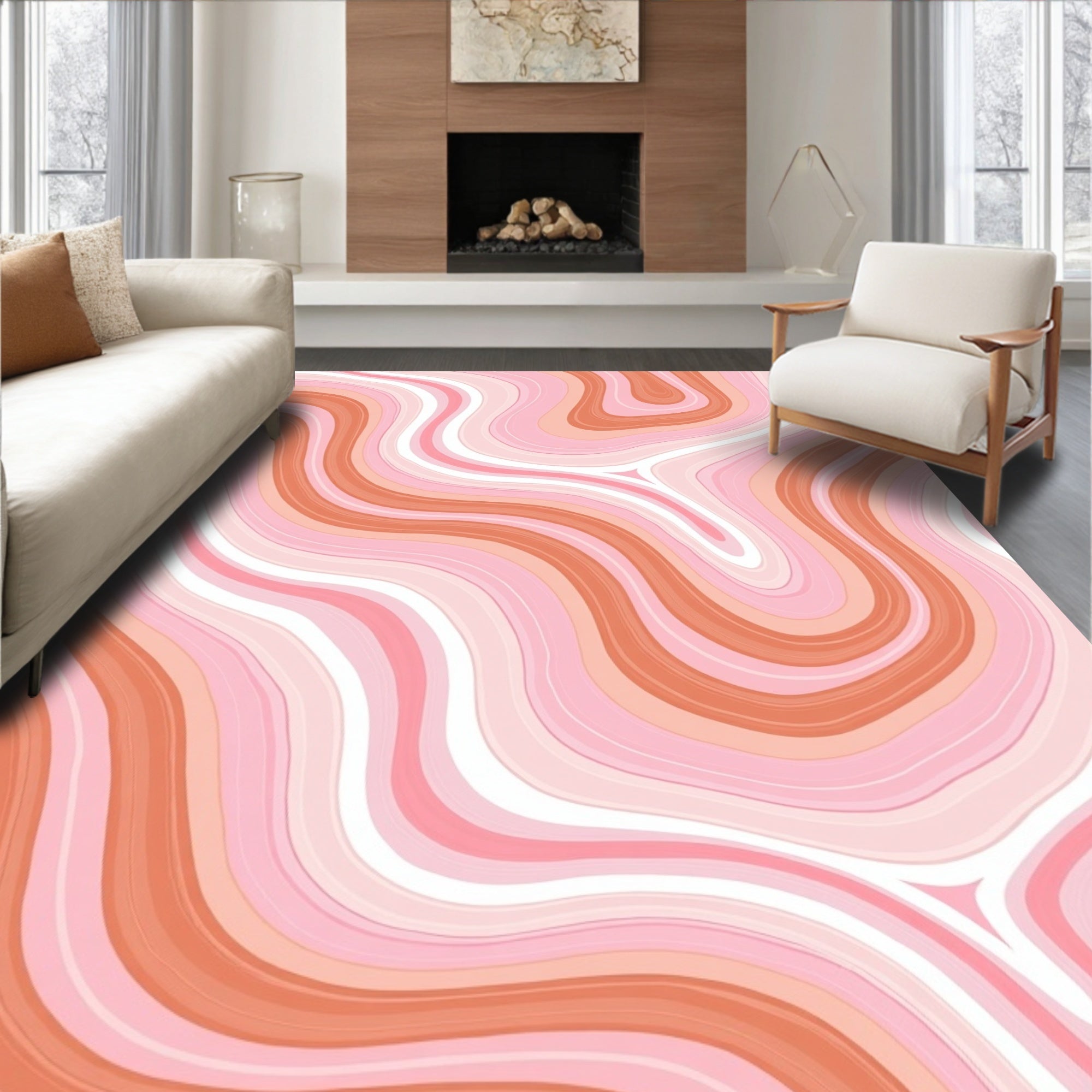 Abstract Coral Reef Wave Design Textured Floor Covering with Flowing Lines (Pink)